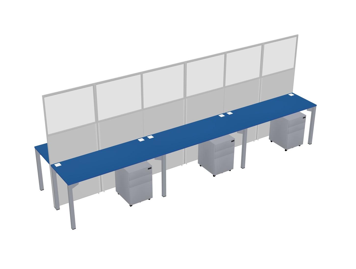 Prism Blue Shared Rectangular Office Cubicle Panel System With Mobile Drawers For 6 Persons