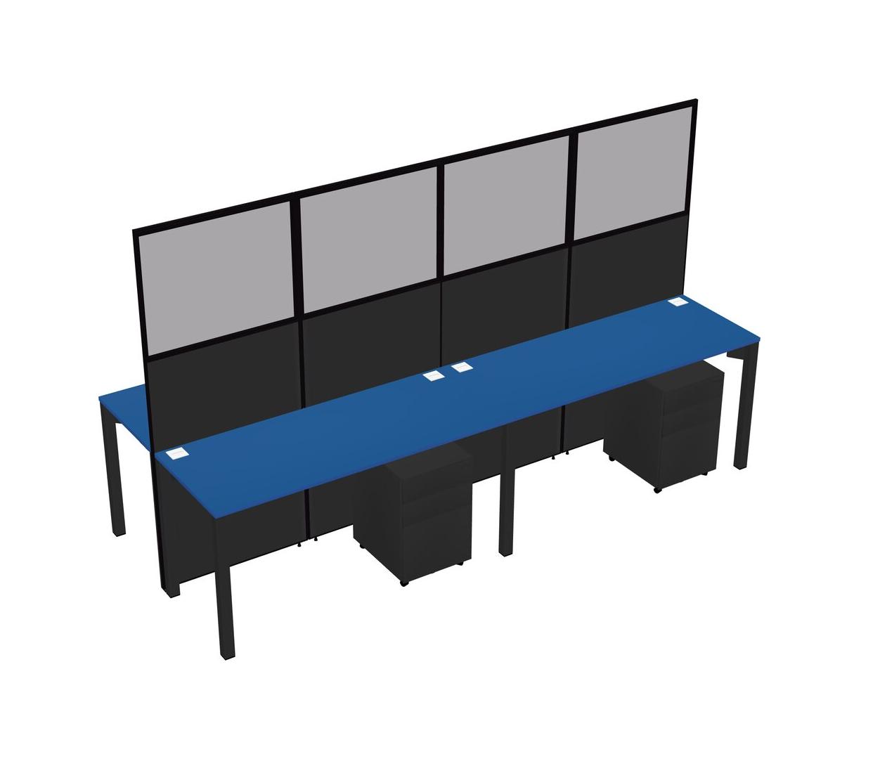 Prism Blue Shared Rectangular Office Cubicle Panel System With Mobile Drawers For 4 Persons