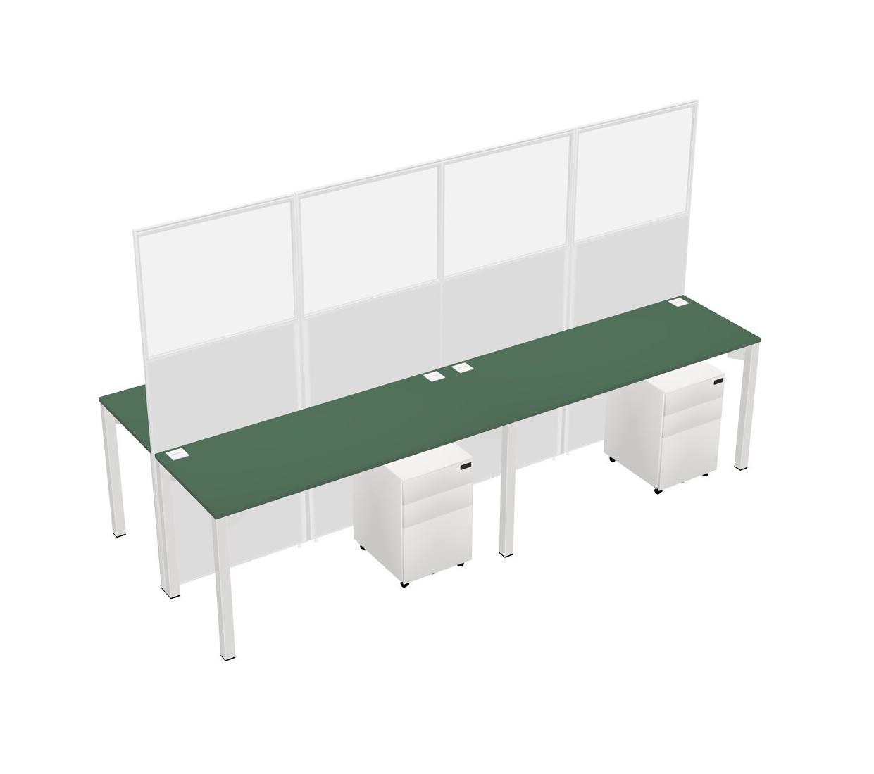Green Shared Rectangular Office Cubicle Panel System With Mobile Drawers For 4 Persons