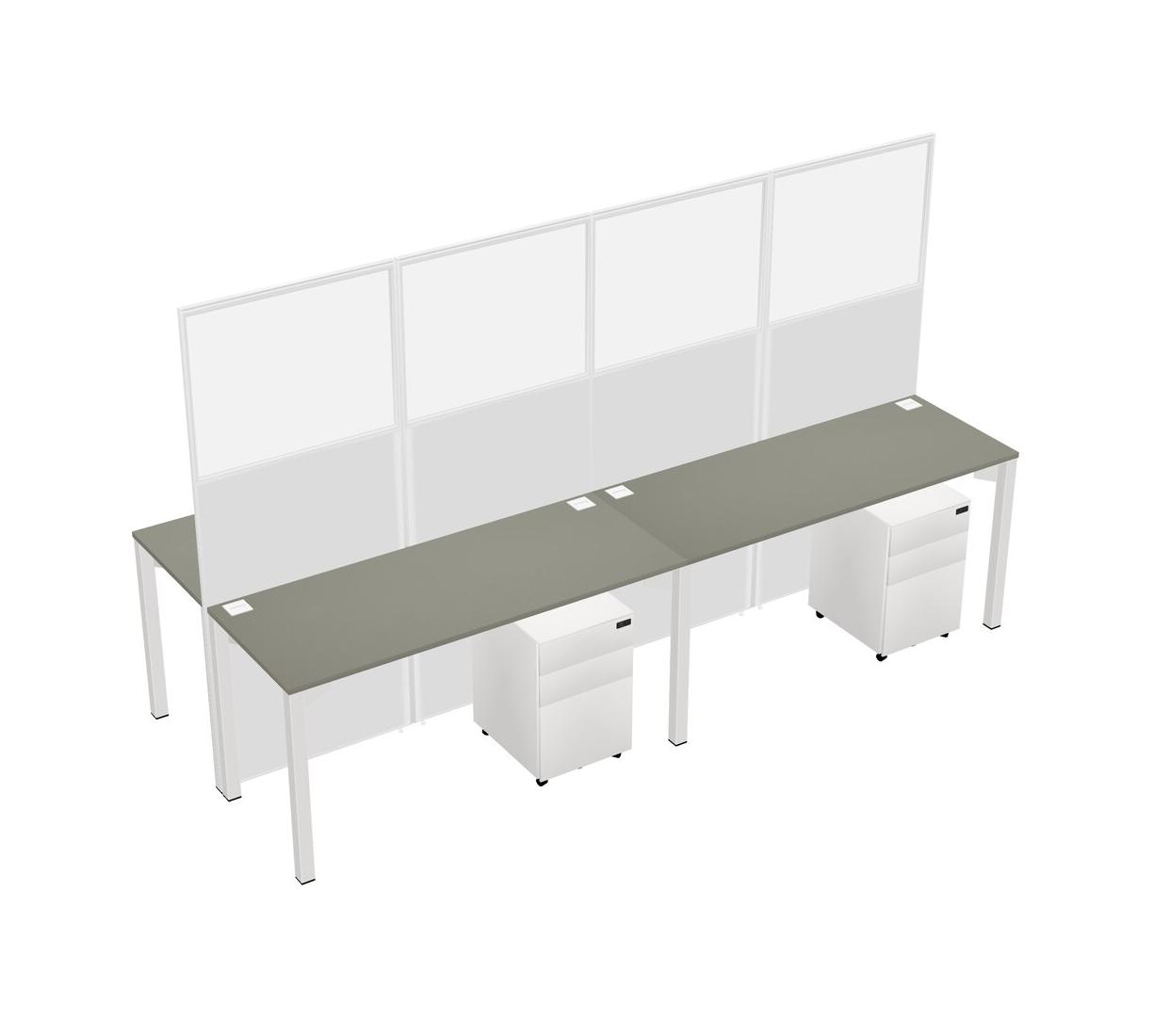 Grey Shadows Shared Rectangular Office Cubicle Panel System With Mobile Drawers For 4 Persons