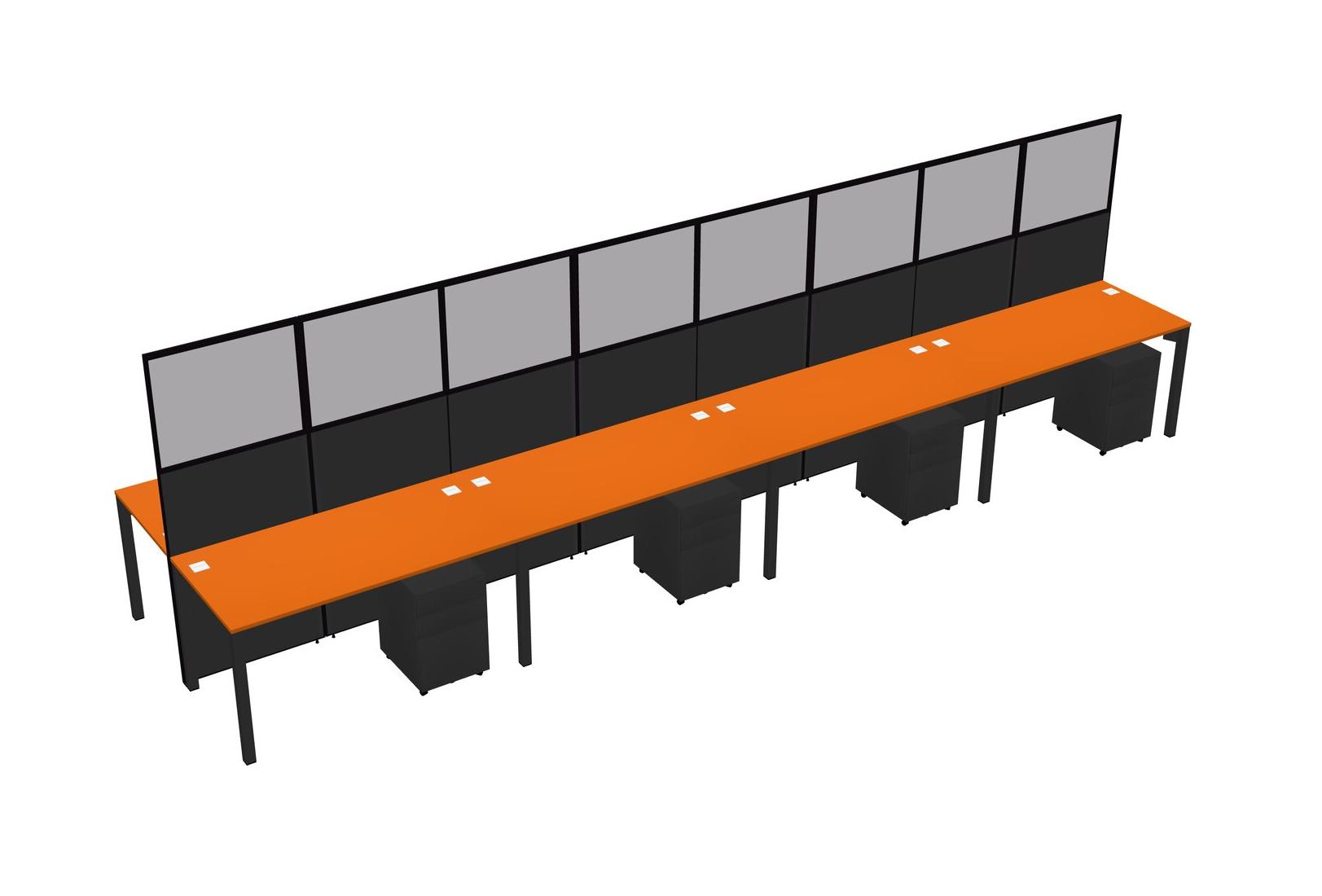 Orange Shared Rectangular Office Cubicle Panel System With Mobile Drawers For 8 Persons