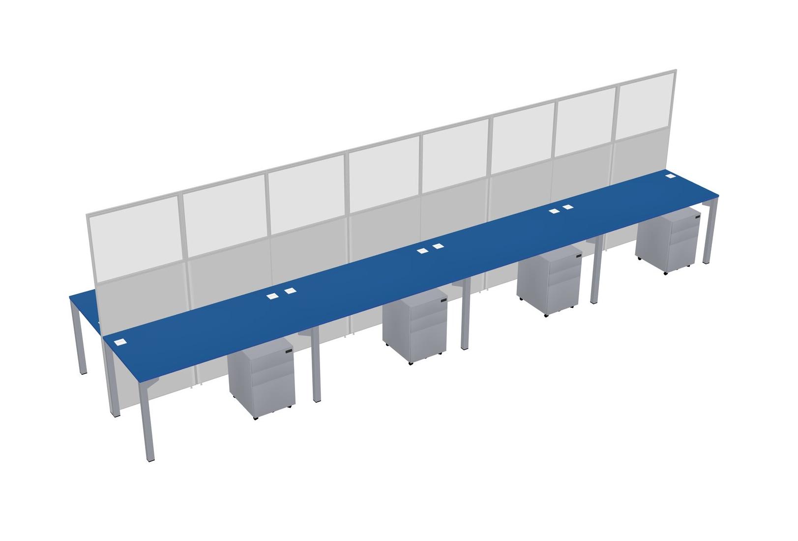 Prism Blue Shared Rectangular Office Cubicle Panel System With Mobile Drawers For 8 Persons