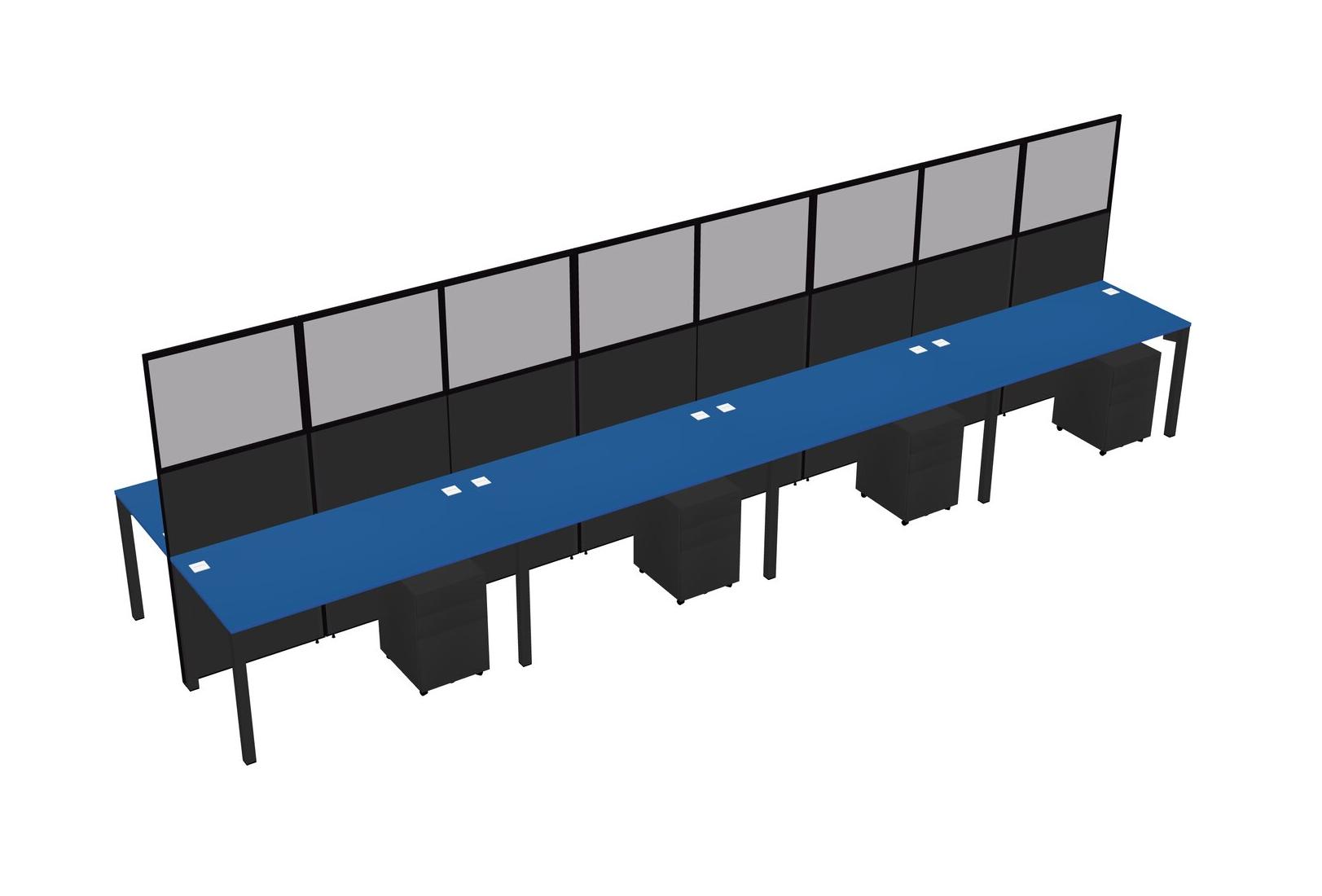Prism Blue Shared Rectangular Office Cubicle Panel System With Mobile Drawers For 8 Persons