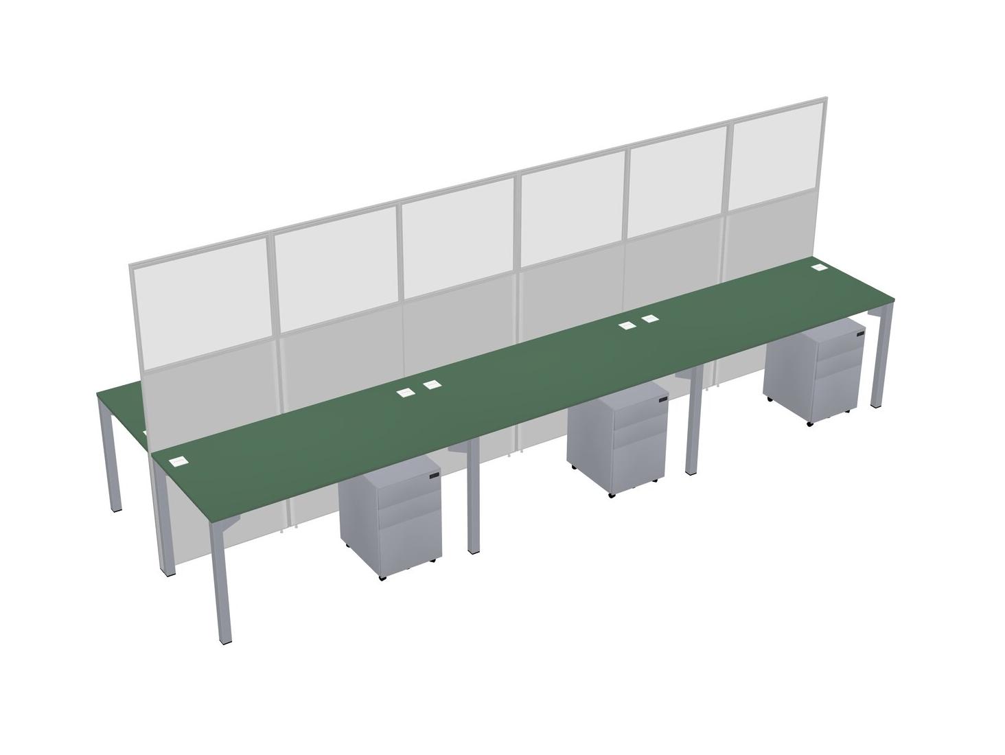 Green Shared Rectangular Office Cubicle Panel System With Mobile Drawers For 6 Persons