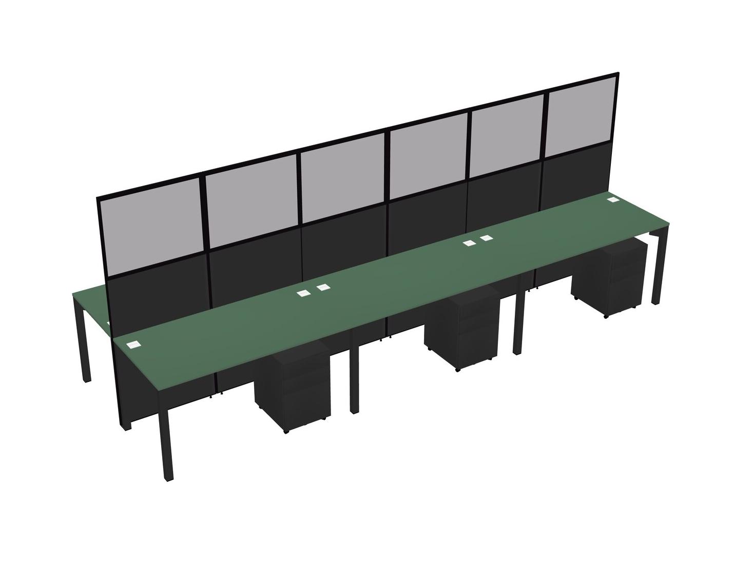 Green Shared Rectangular Office Cubicle Panel System With Mobile Drawers For 6 Persons