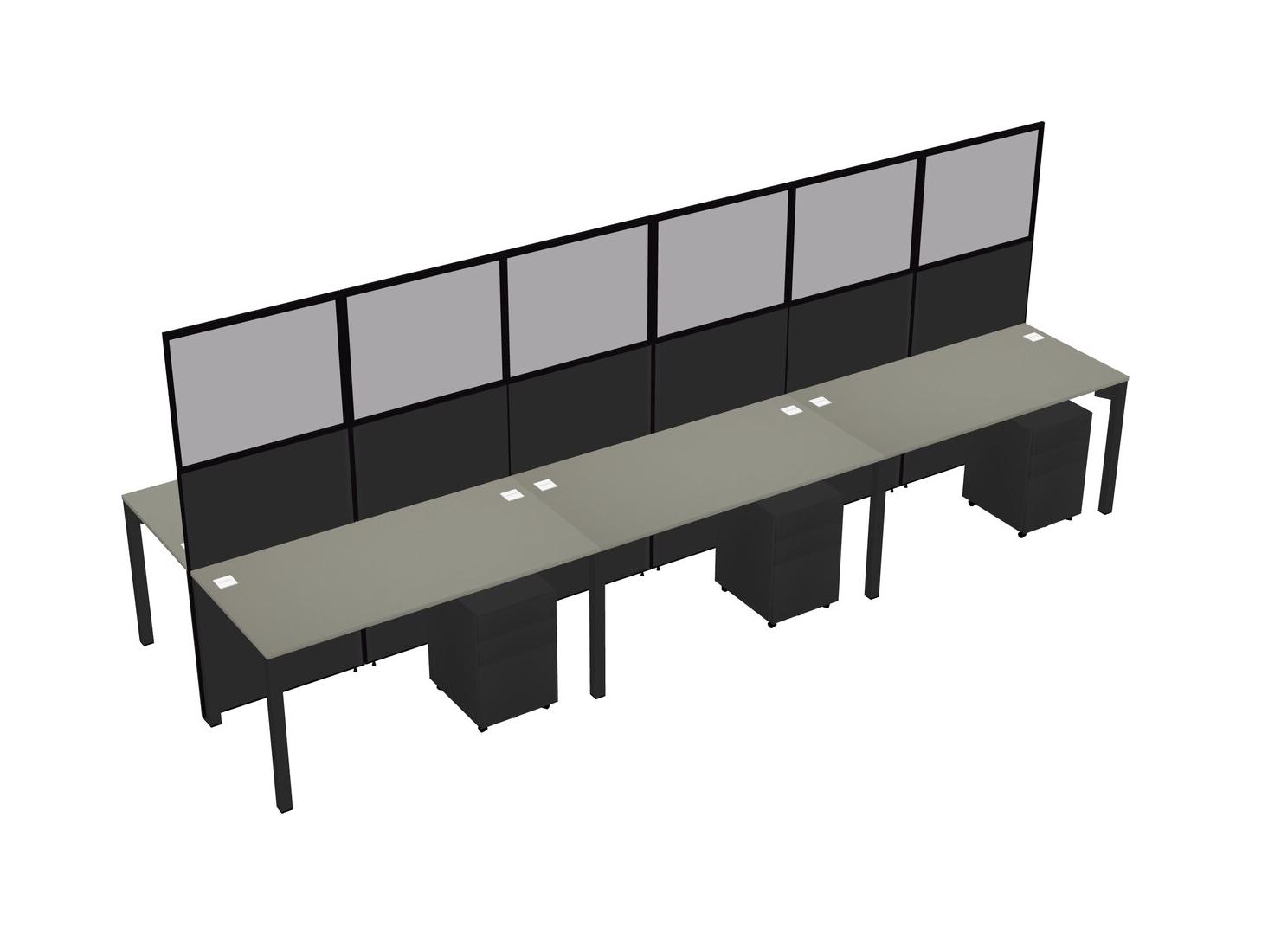 Grey Shadows Shared Rectangular Office Cubicle Panel System With Mobile Drawers For 6 Persons