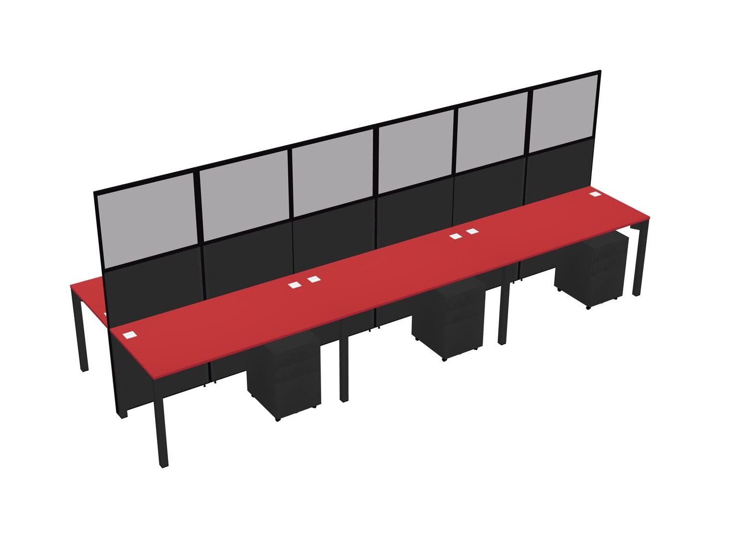 Prism Red Shared Rectangular Office Cubicle Panel System With Mobile Drawers For 6 Persons