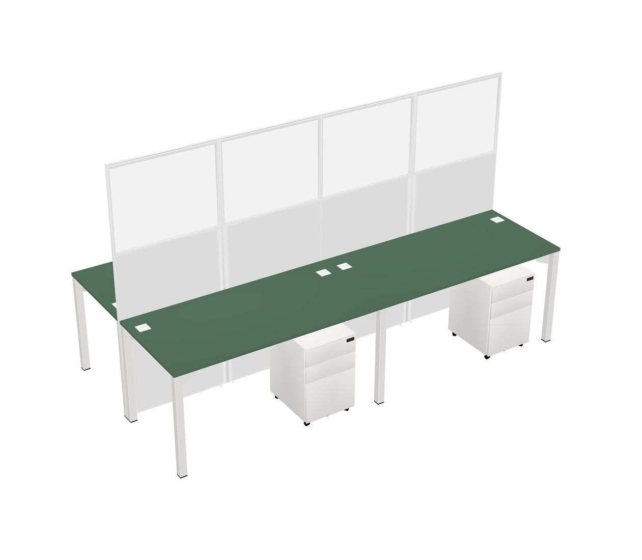 Green Shared Rectangular Office Cubicle Panel System With Mobile Drawers For 4 Persons