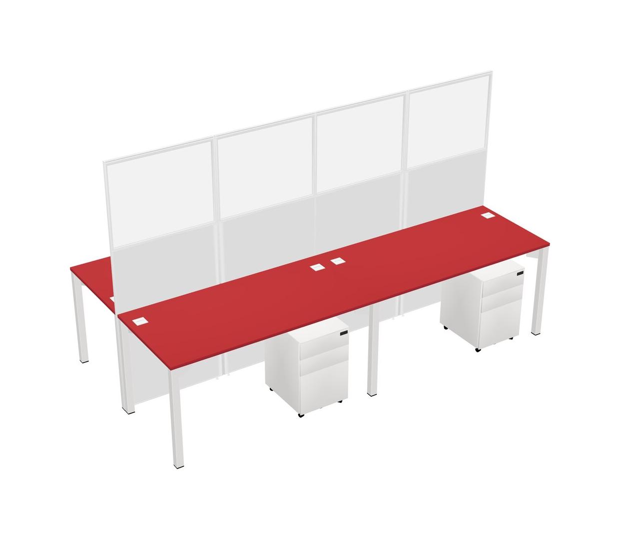 Prism Red Shared Rectangular Office Cubicle Panel System With Mobile Drawers For 4 Persons