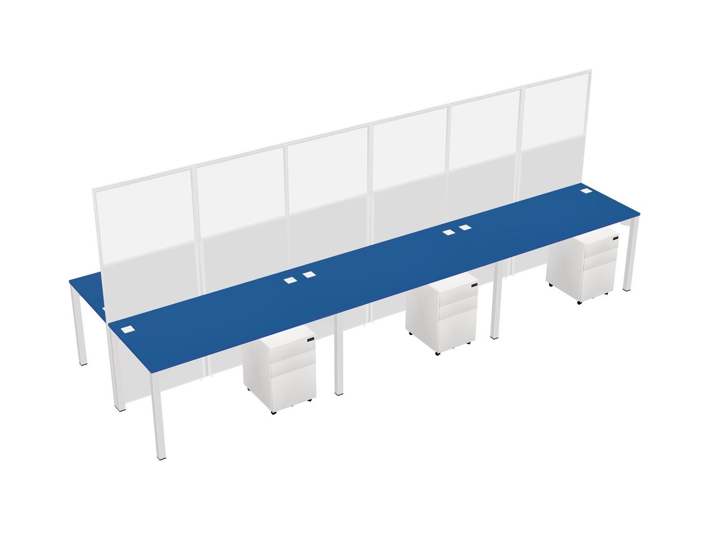 Prism Blue Shared Rectangular Office Cubicle Panel System With Mobile Drawers For 6 Persons