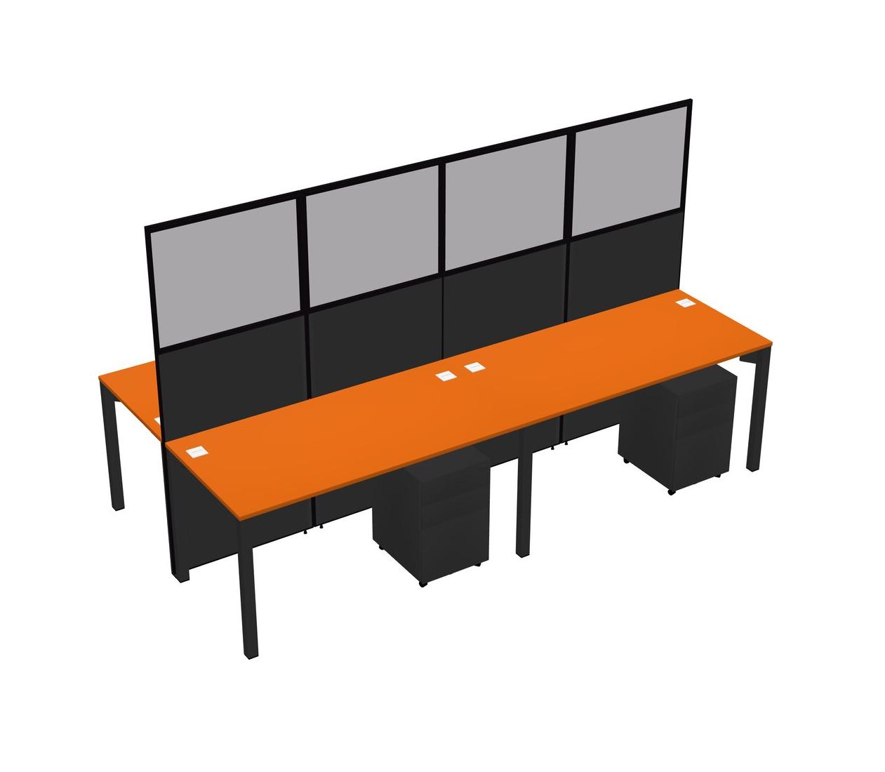 Orange Shared Rectangular Office Cubicle Panel System With Mobile Drawers For 4 Persons