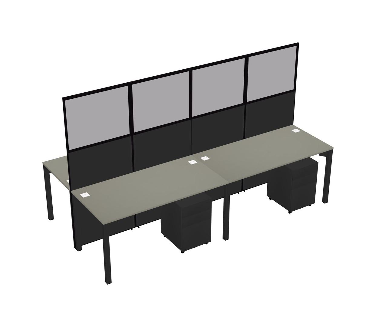 Grey Shadows Shared Rectangular Office Cubicle Panel System With Mobile Drawers For 4 Persons