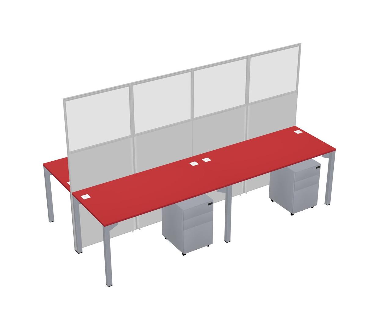 Prism Red Shared Rectangular Office Cubicle Panel System With Mobile Drawers For 4 Persons
