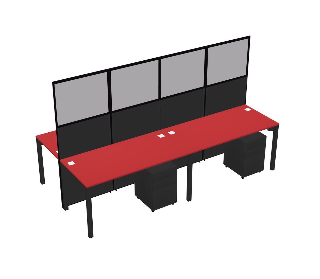 Prism Red Shared Rectangular Office Cubicle Panel System With Mobile Drawers For 4 Persons