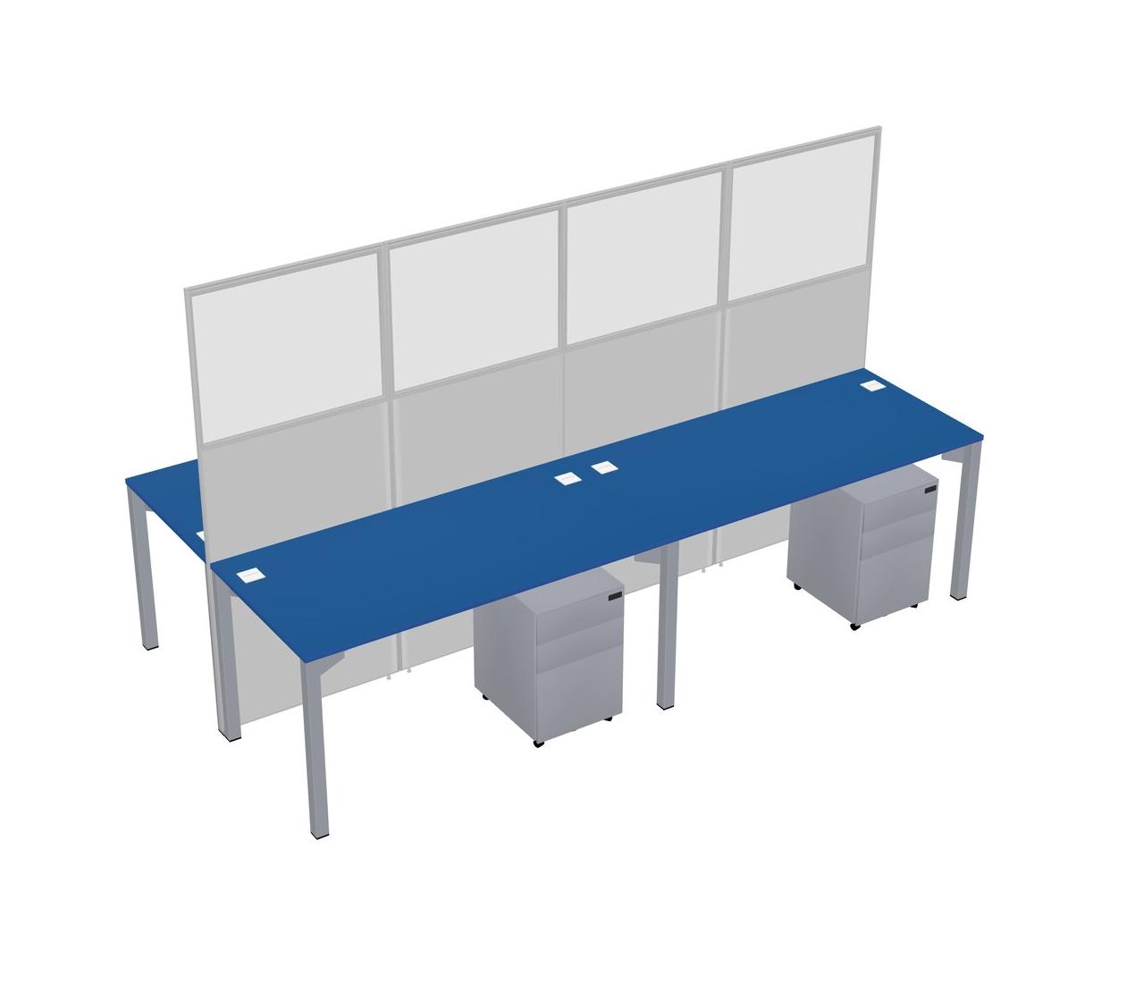 Prism Blue Shared Rectangular Office Cubicle Panel System With Mobile Drawers For 4 Persons