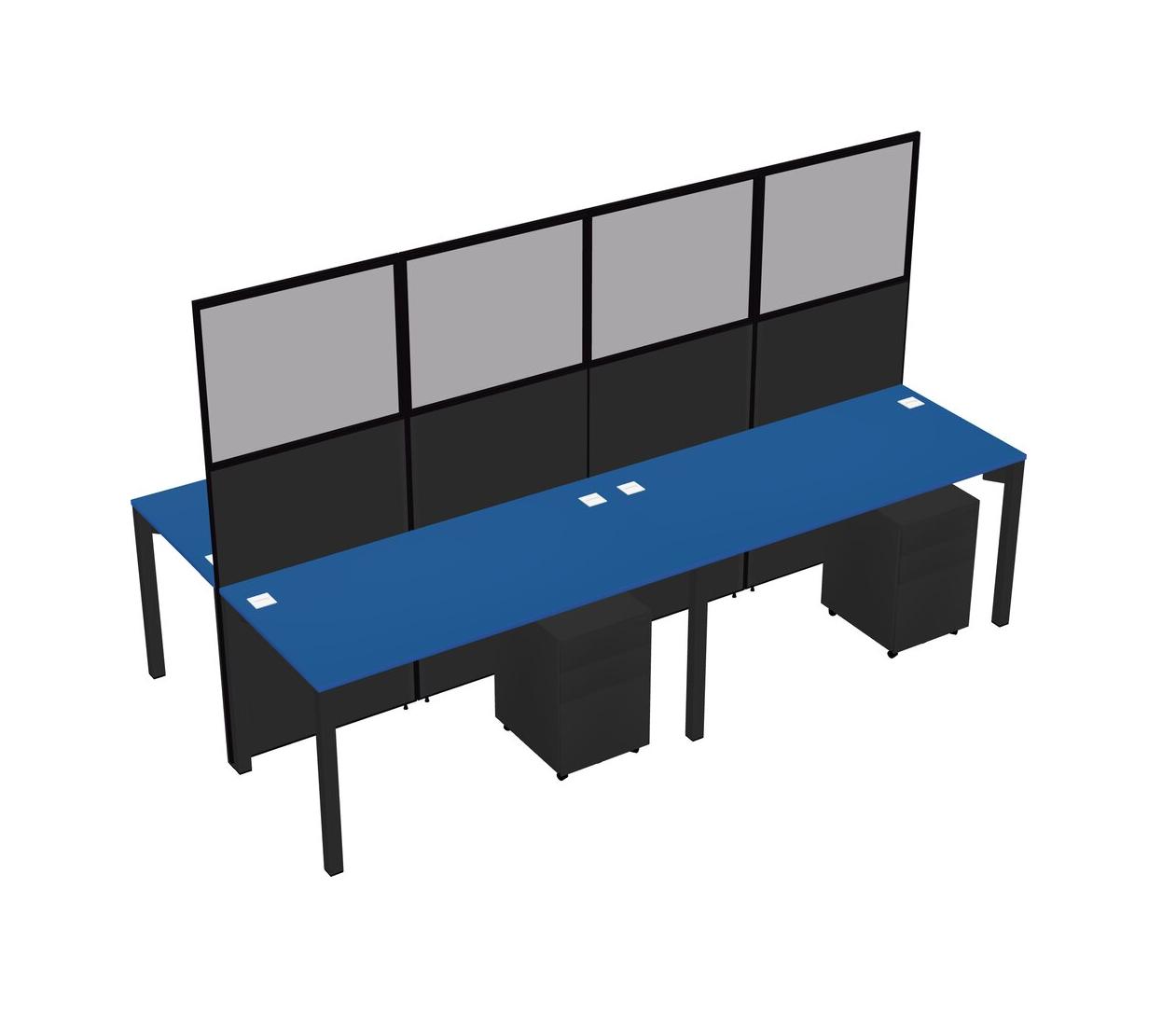 Prism Blue Shared Rectangular Office Cubicle Panel System With Mobile Drawers For 4 Persons