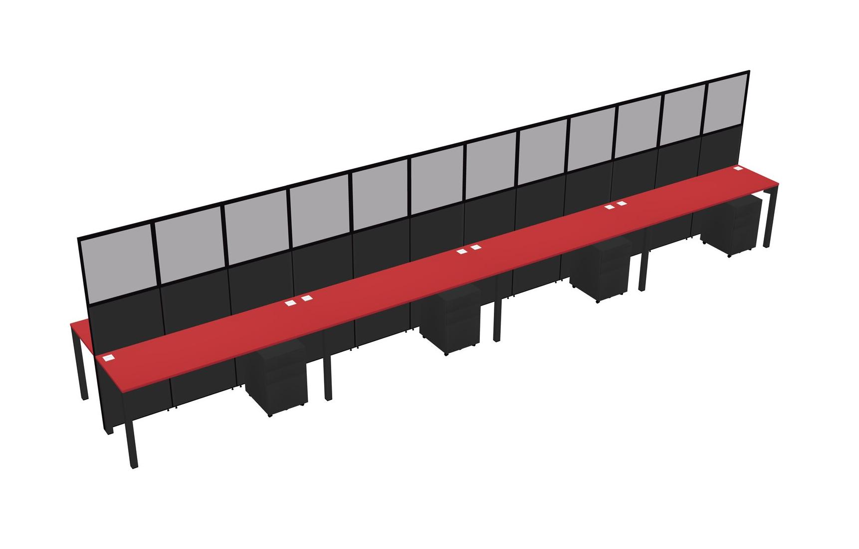 Prism Red Shared Rectangular Office Cubicle Panel System With Mobile Drawers For 8 Persons
