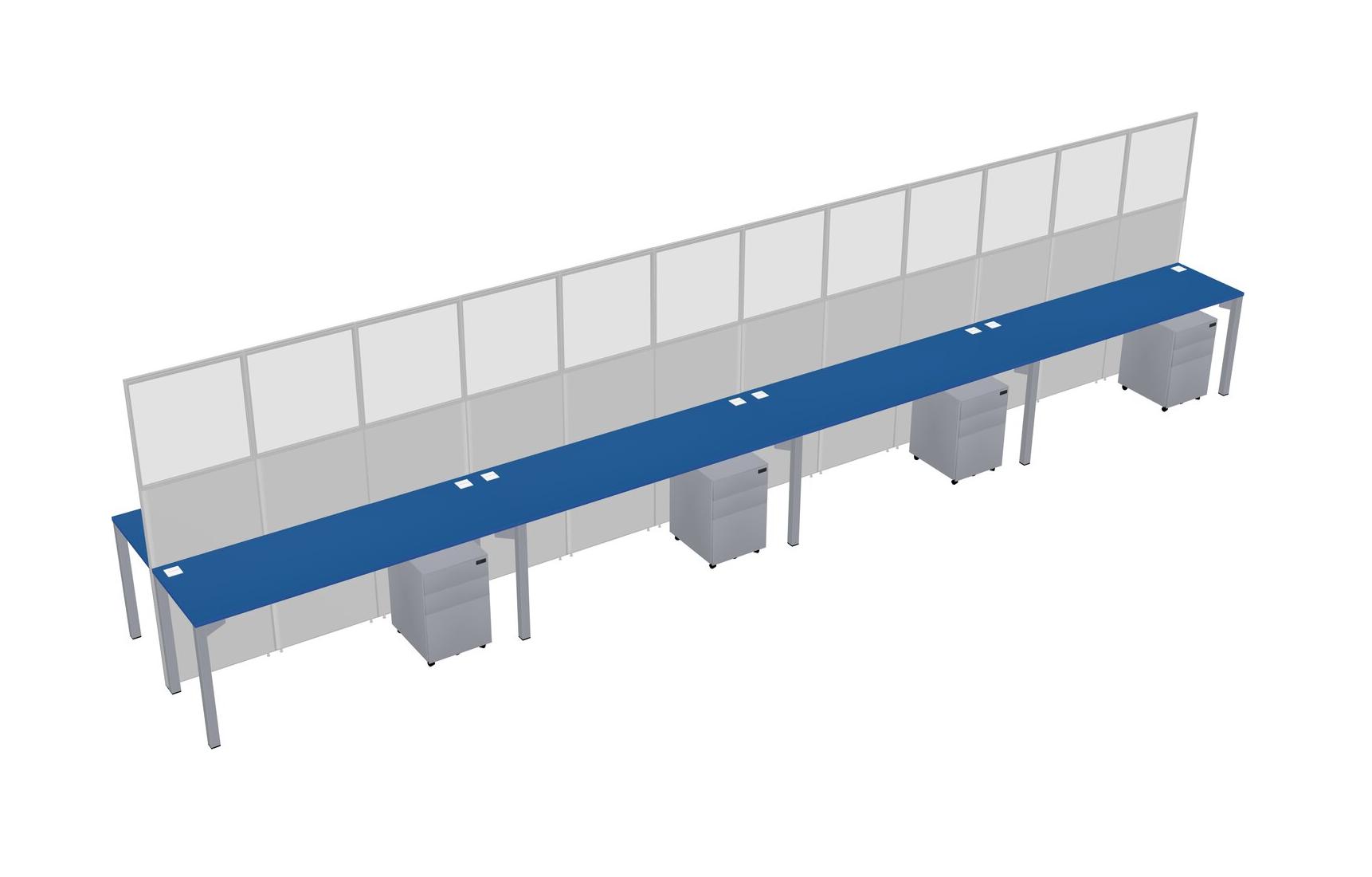 Prism Blue Shared Rectangular Office Cubicle Panel System With Mobile Drawers For 8 Persons