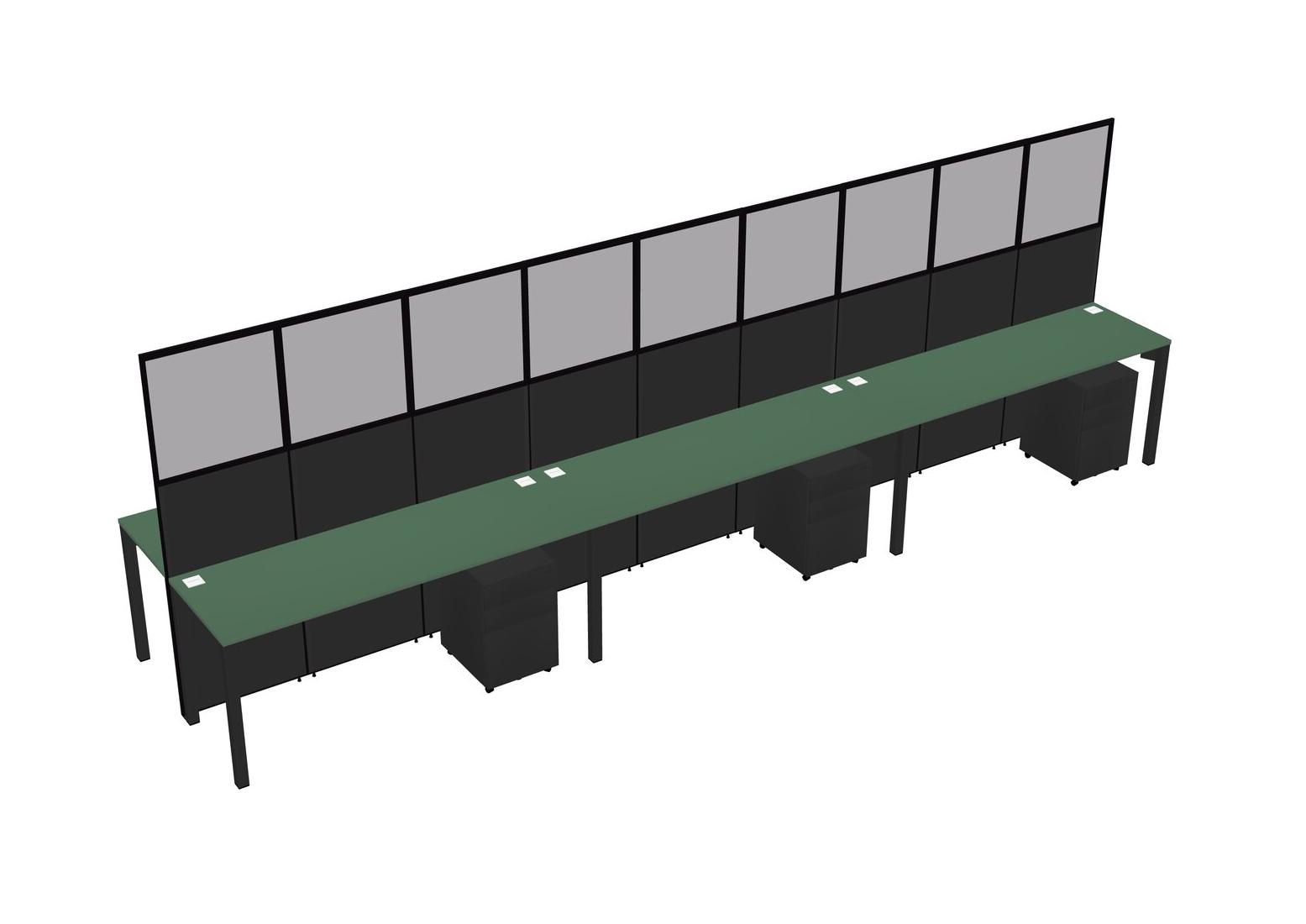 Green Shared Rectangular Office Cubicle Panel System With Mobile Drawers For 6 Persons