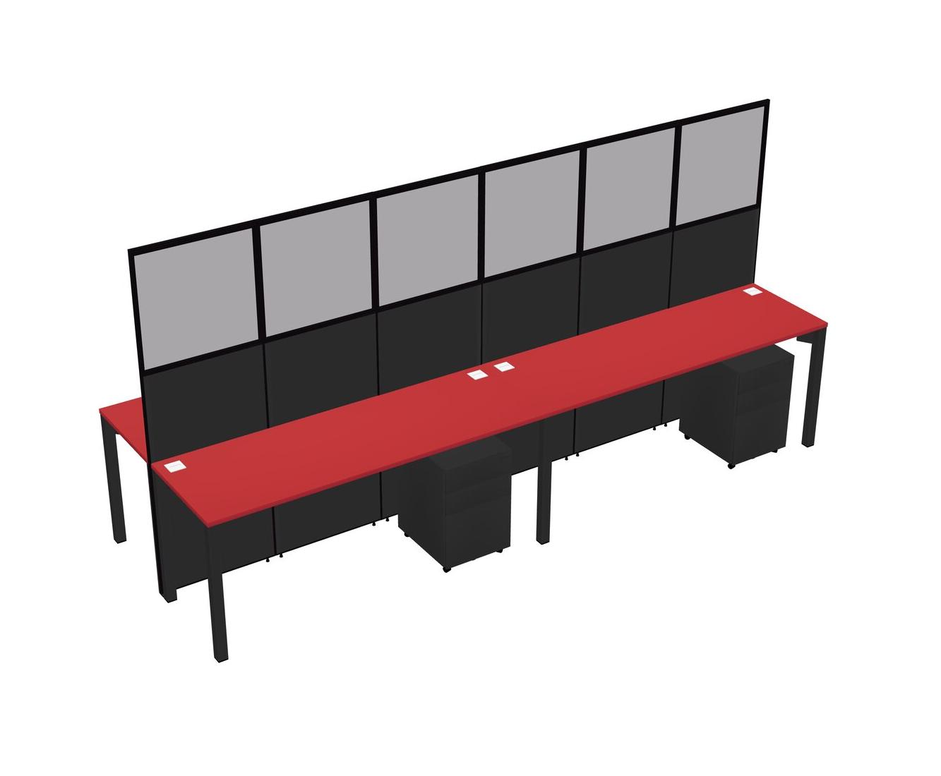 Prism Red Shared Rectangular Office Cubicle Panel System With Mobile Drawers For 4 Persons