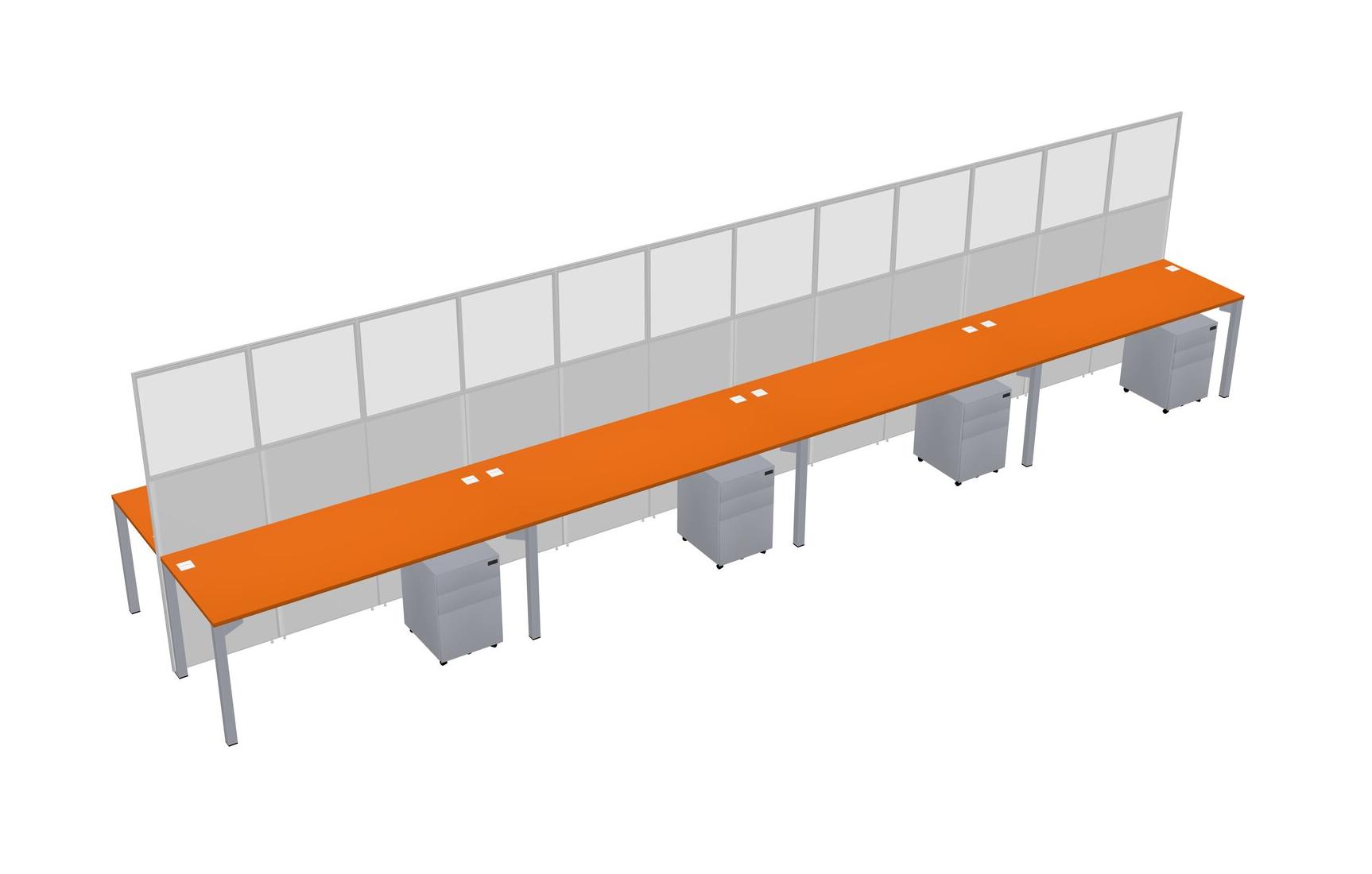 Orange Shared Rectangular Office Cubicle Panel System With Mobile Drawers For 8 Persons