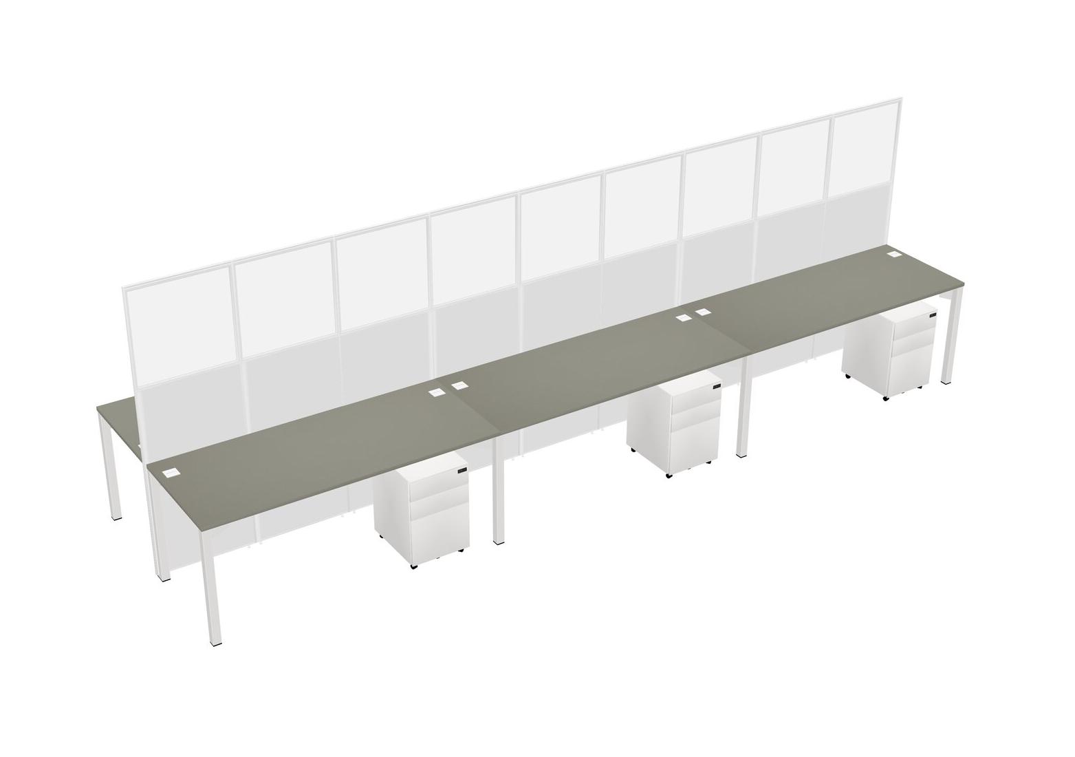 Grey Shadows Shared Rectangular Office Cubicle Panel System With Mobile Drawers For 6 Persons