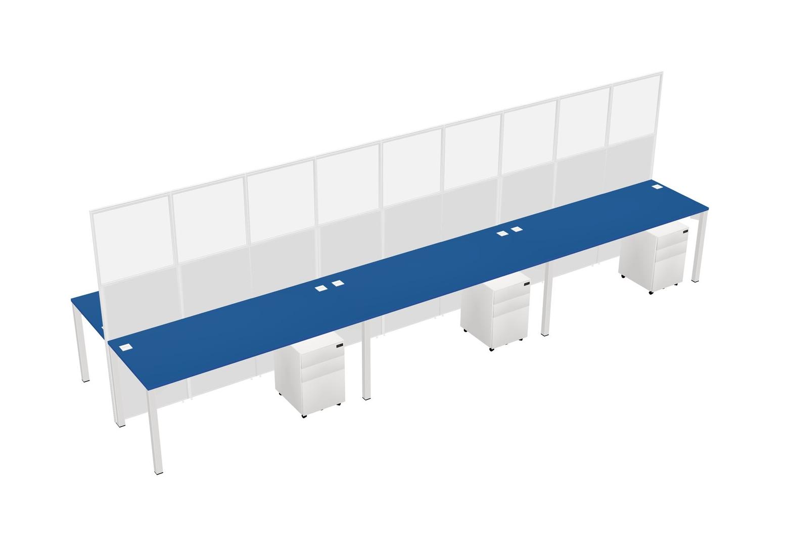 Prism Blue Shared Rectangular Office Cubicle Panel System With Mobile Drawers For 6 Persons