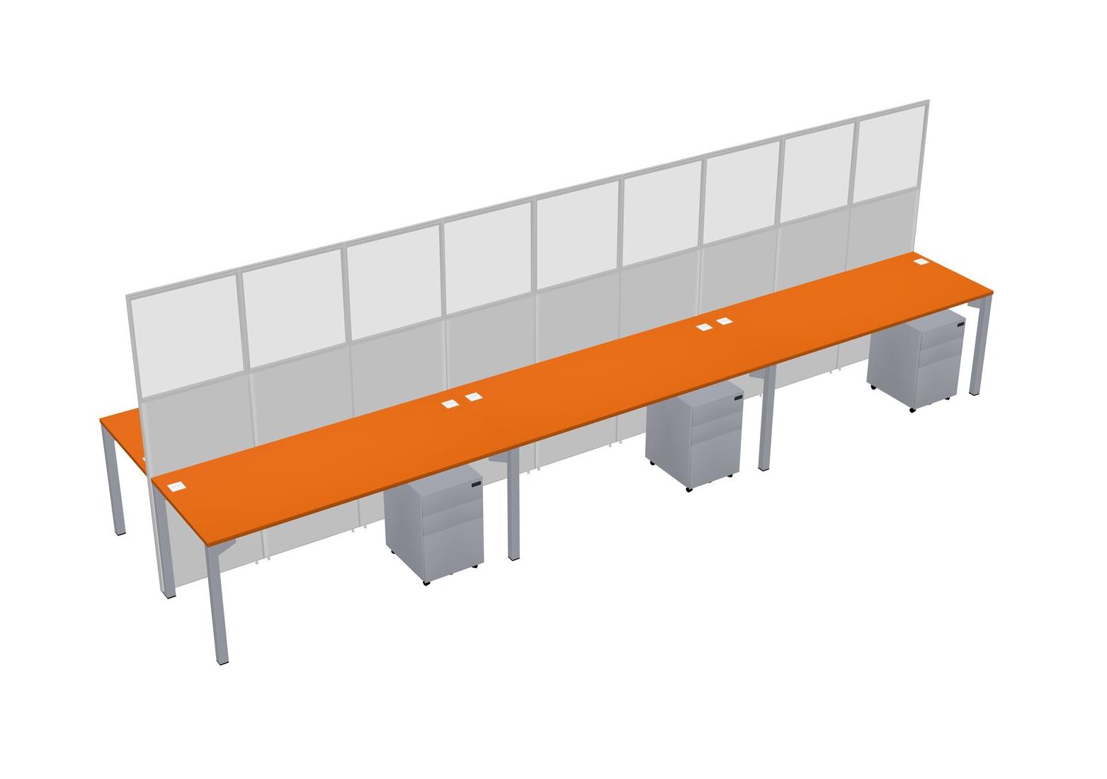 Orange Shared Rectangular Office Cubicle Panel System With Mobile Drawers For 6 Persons