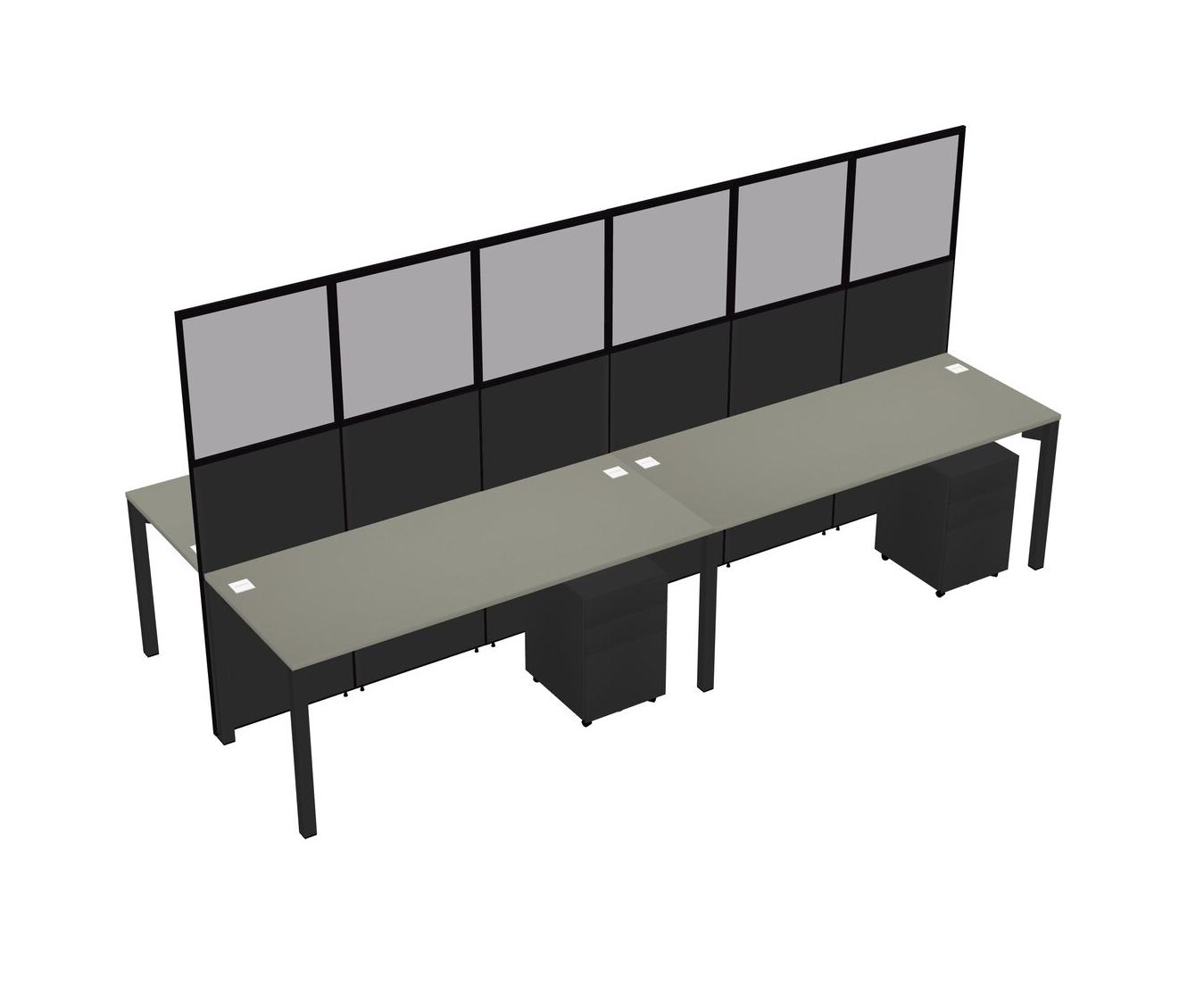 Grey Shadows Shared Rectangular Office Cubicle Panel System With Mobile Drawers For 4 Persons