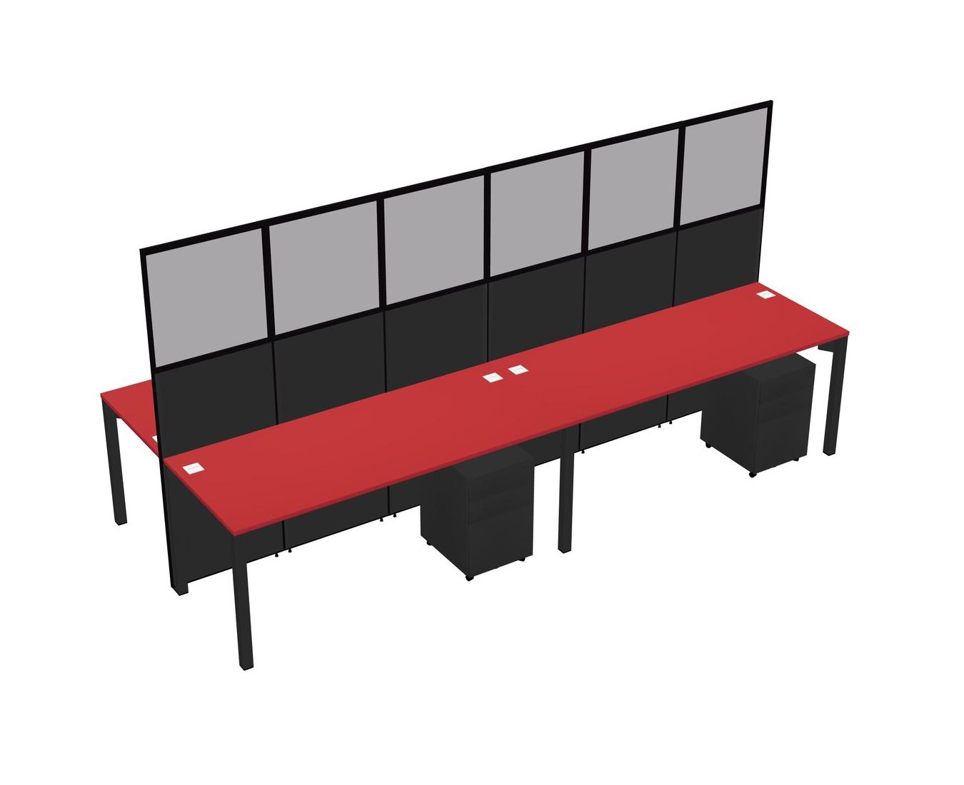 Prism Red Shared Rectangular Office Cubicle Panel System With Mobile Drawers For 4 Persons