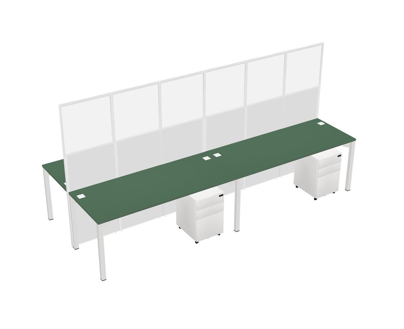 Green Shared Rectangular Office Cubicle Panel System With Mobile Drawers For 4 Persons