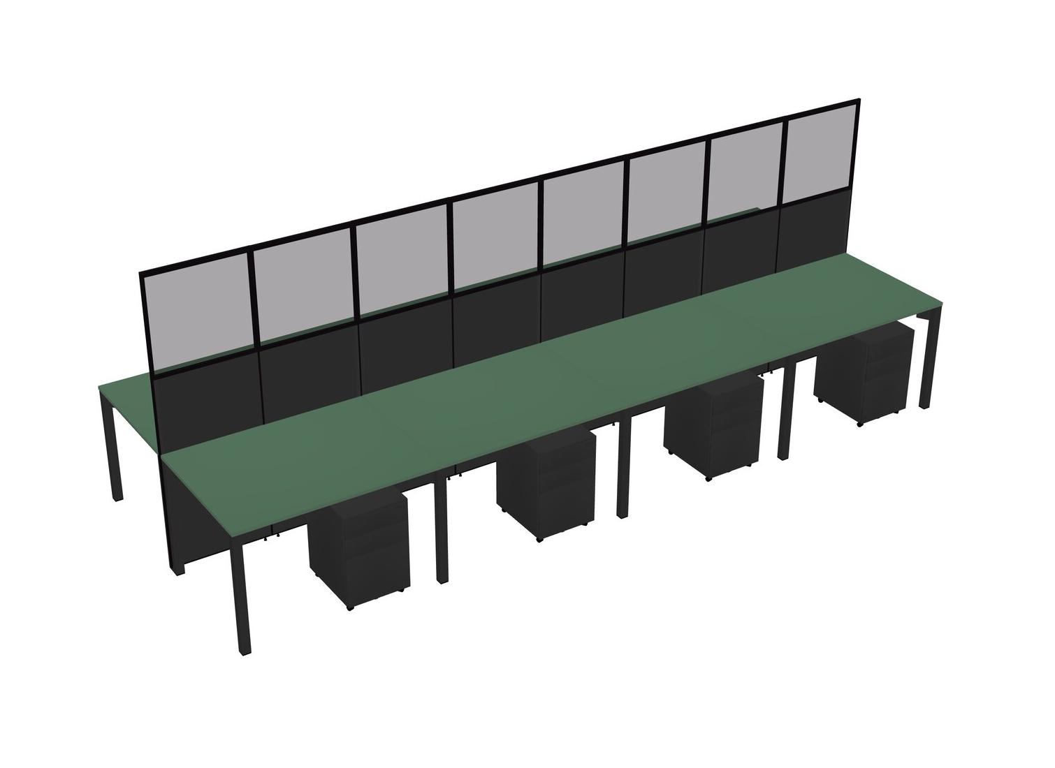 Green Shared Rectangular Office Cubicle Panel System With Mobile Drawers For 8 Persons