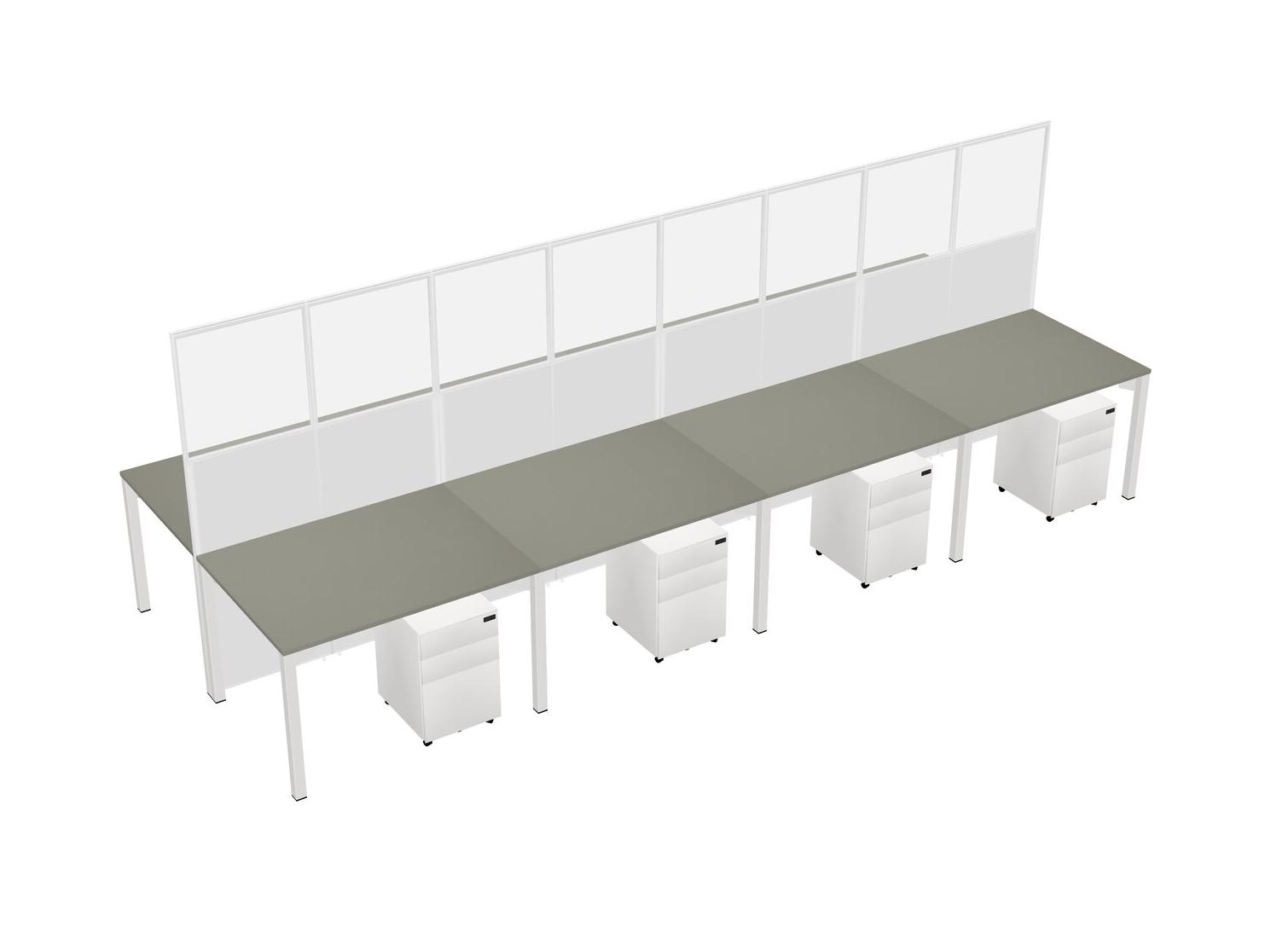 Grey Shadows Shared Rectangular Office Cubicle Panel System With Mobile Drawers For 8 Persons