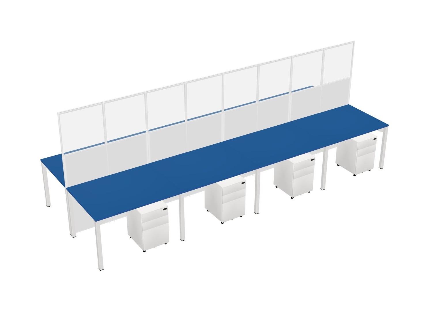 Prism Blue Shared Rectangular Office Cubicle Panel System With Mobile Drawers For 8 Persons