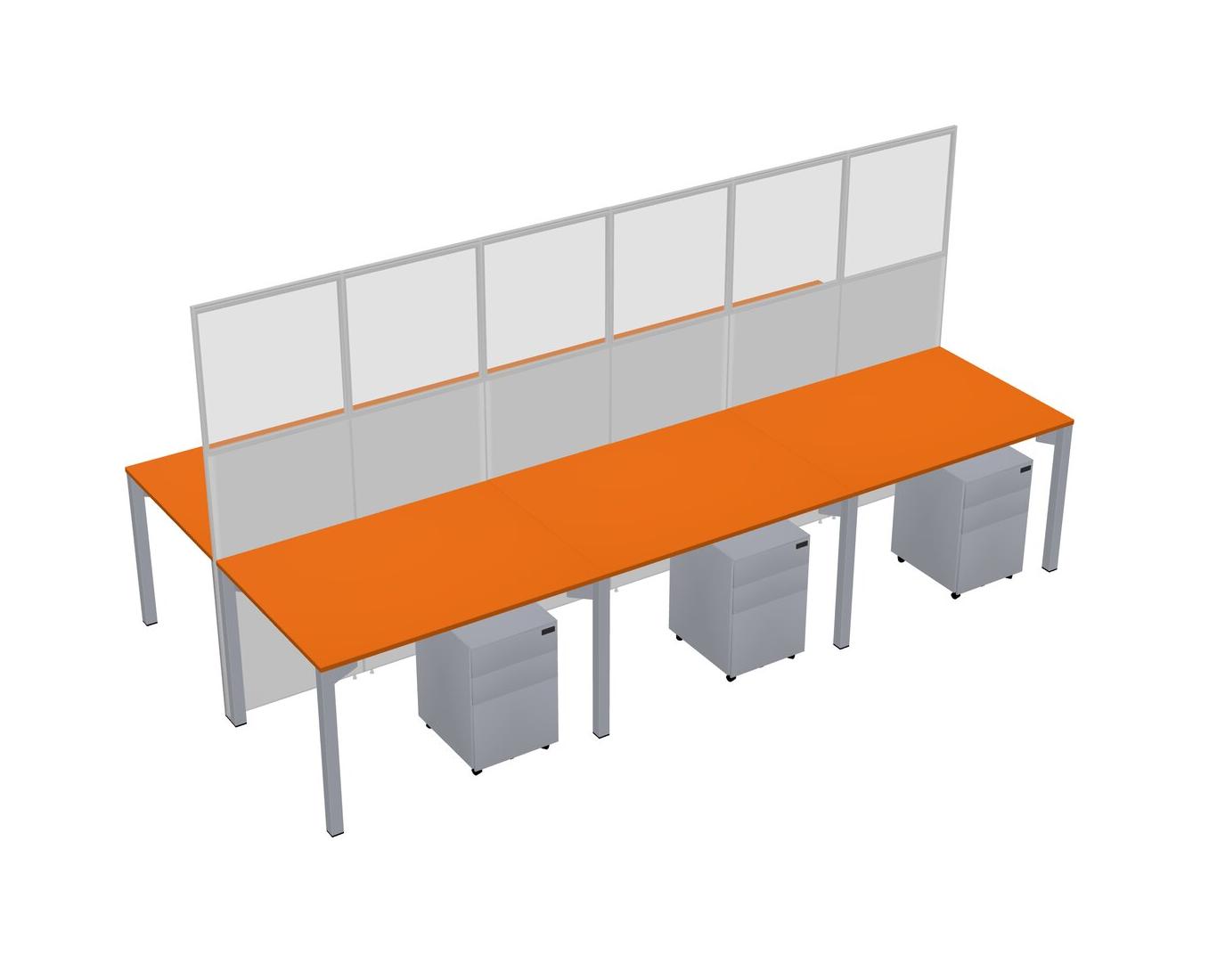 Orange Shared Rectangular Office Cubicle Panel System With Mobile Drawers For 6 Persons