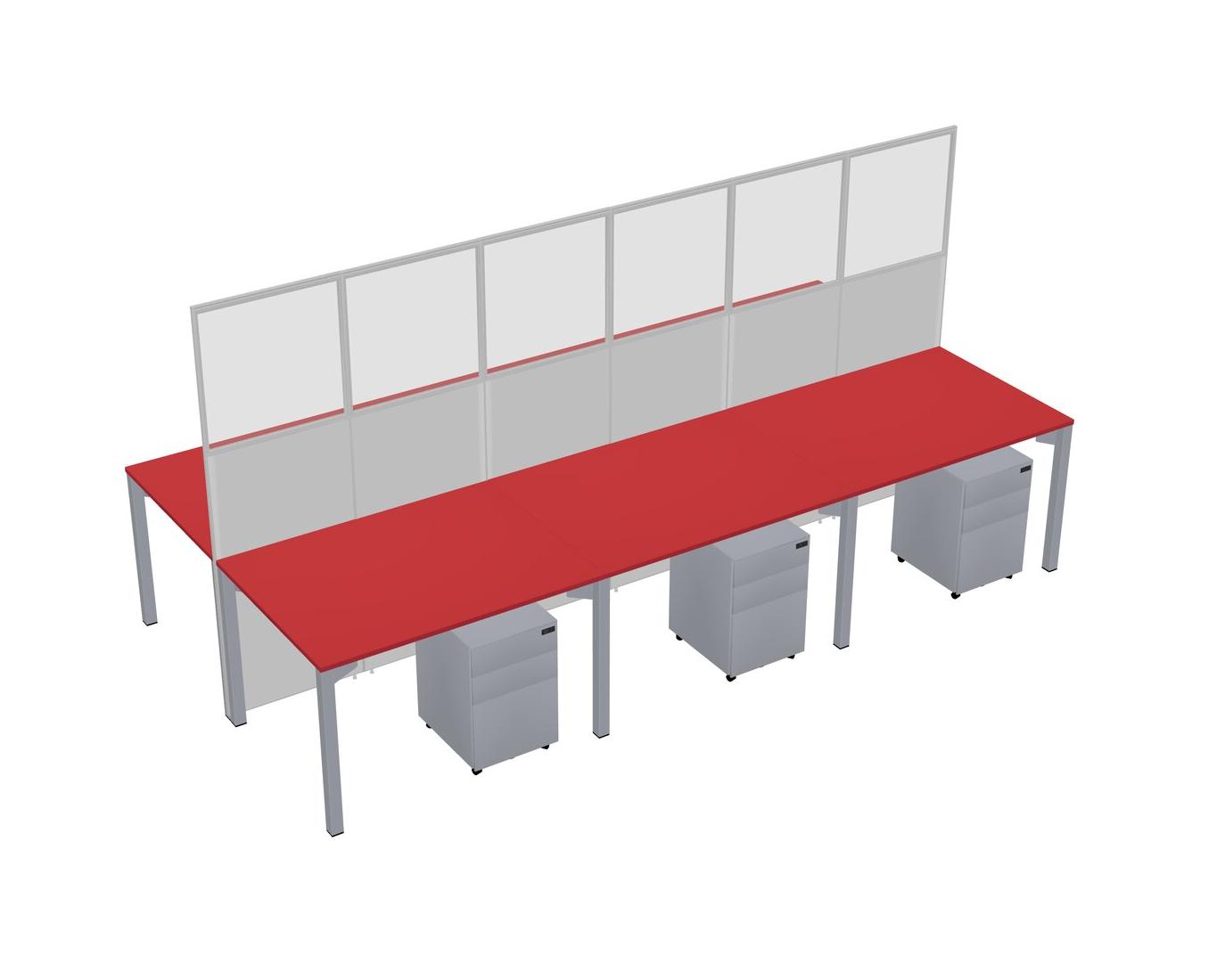 Prism Red Shared Rectangular Office Cubicle Panel System With Mobile Drawers For 6 Persons