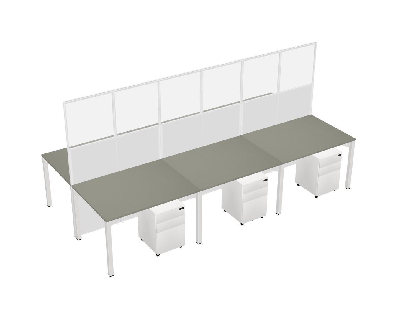Grey Shadows Shared Rectangular Office Cubicle Panel System With Mobile Drawers For 6 Persons