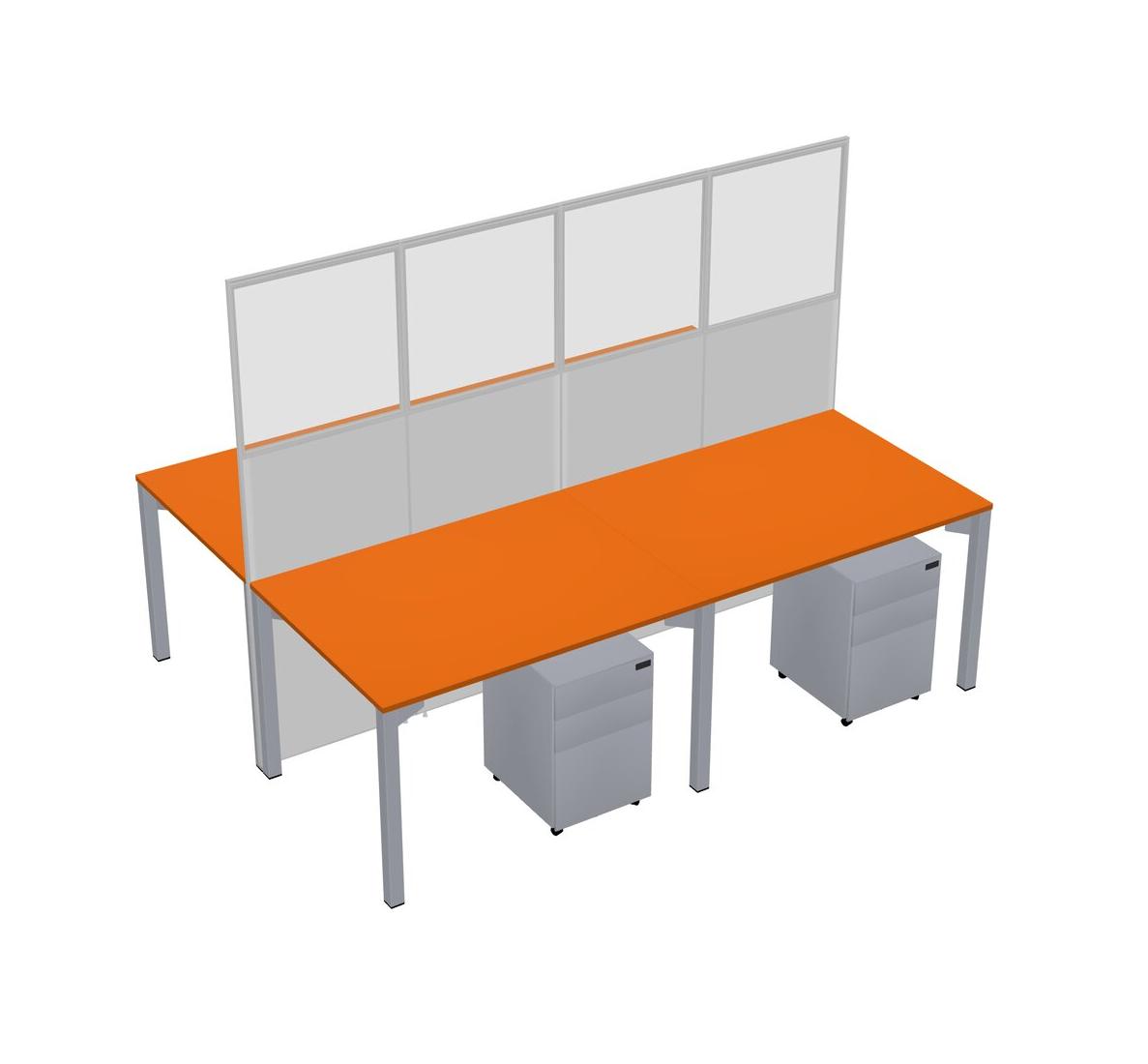 Orange Shared Rectangular Office Cubicle Panel System With Mobile Drawers For 4 Persons