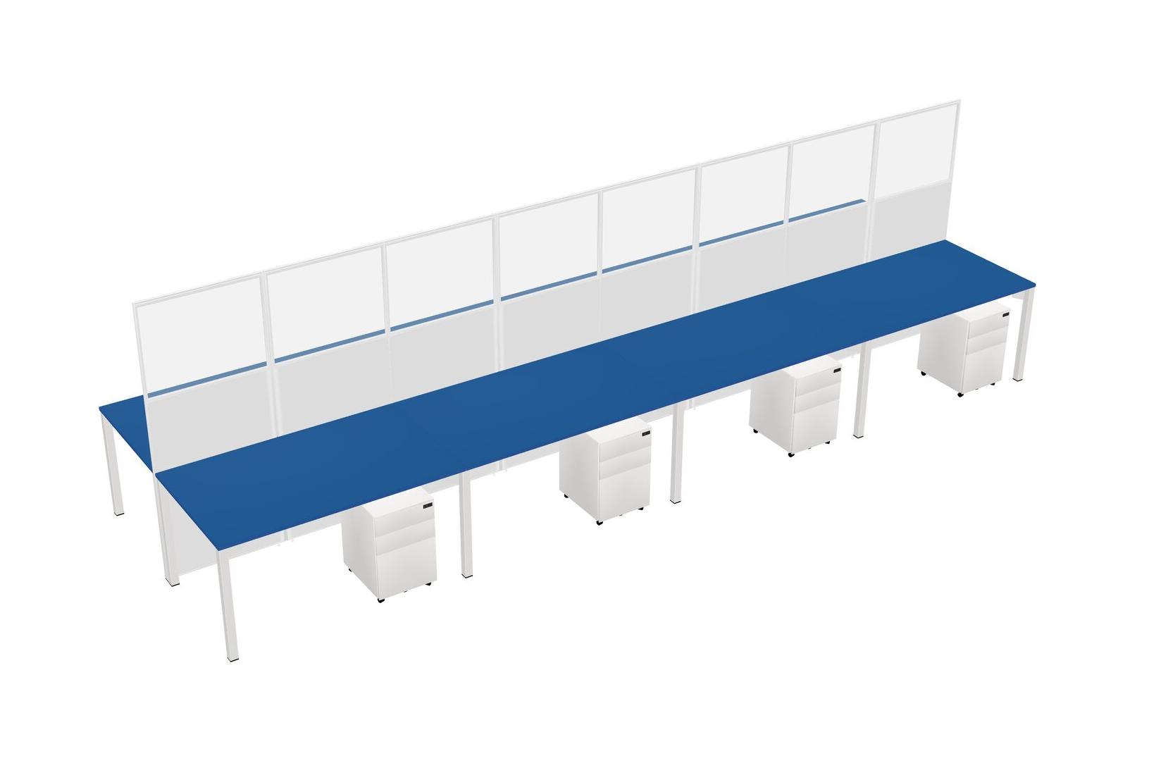 Prism Blue Shared Rectangular Office Cubicle Panel System With Mobile Drawers For 8 Persons