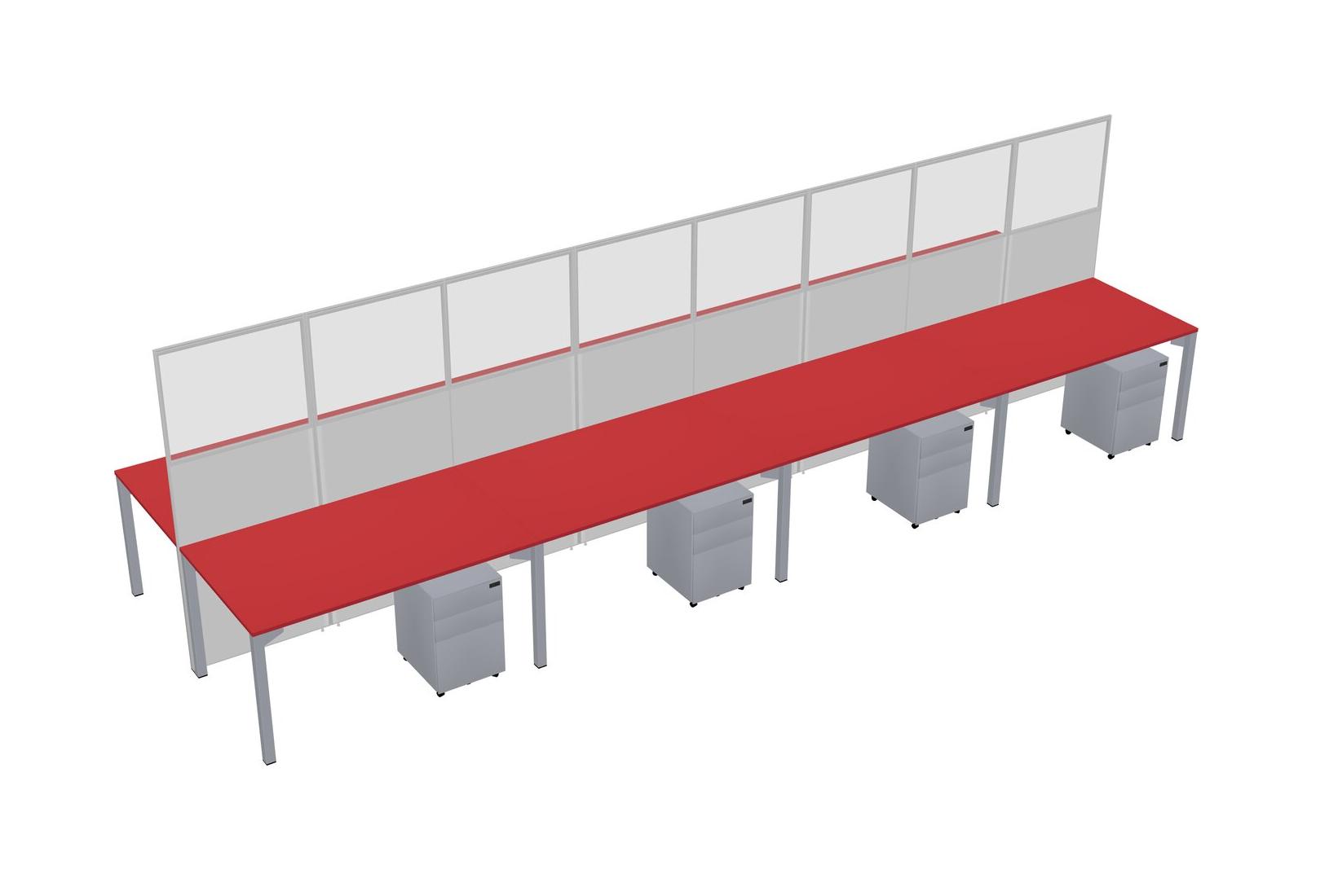 Prism Red Shared Rectangular Office Cubicle Panel System With Mobile Drawers For 8 Persons