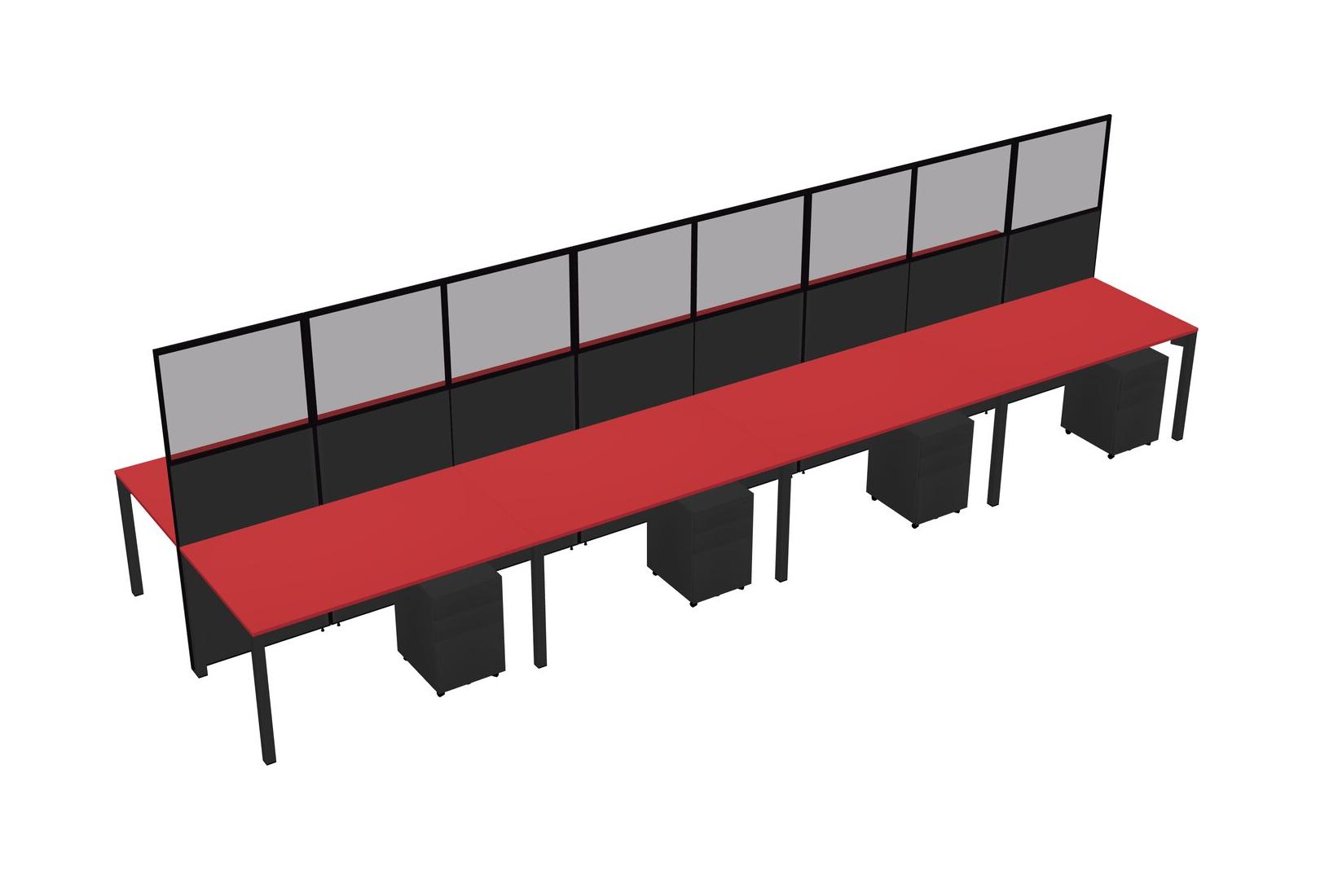 Prism Red Shared Rectangular Office Cubicle Panel System With Mobile Drawers For 8 Persons