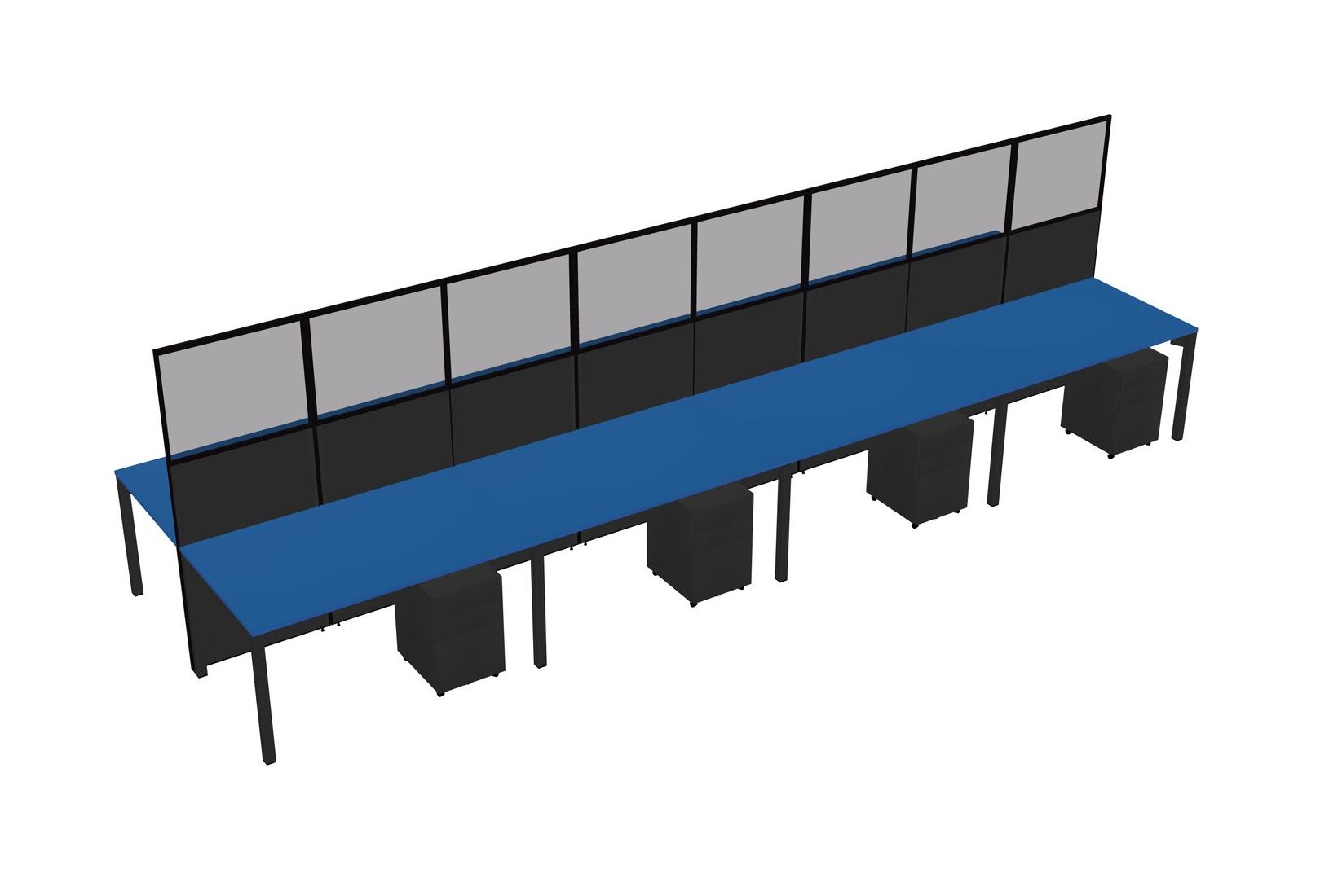 Prism Blue Shared Rectangular Office Cubicle Panel System With Mobile Drawers For 8 Persons