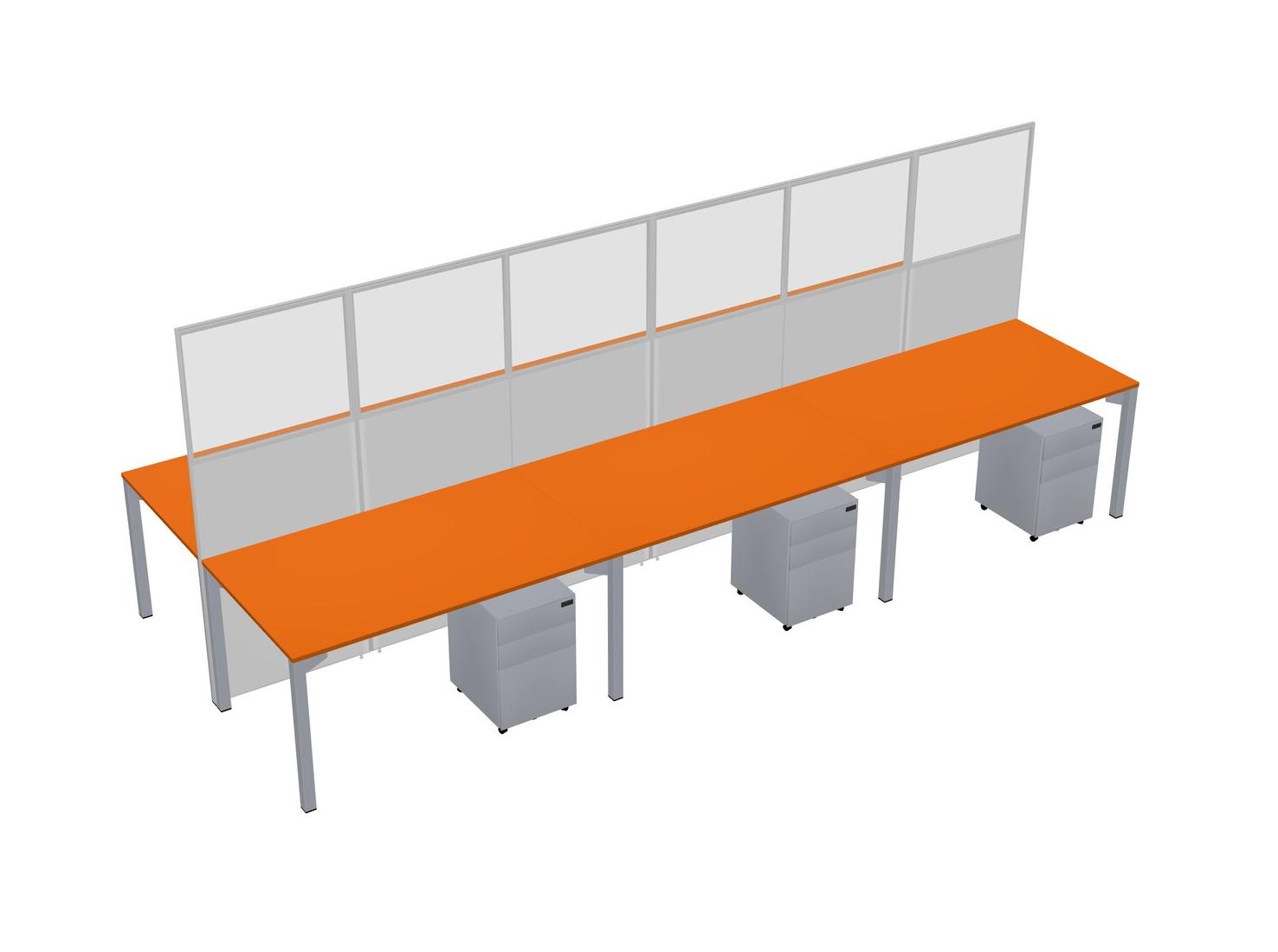 Orange Shared Rectangular Office Cubicle Panel System With Mobile Drawers For 6 Persons
