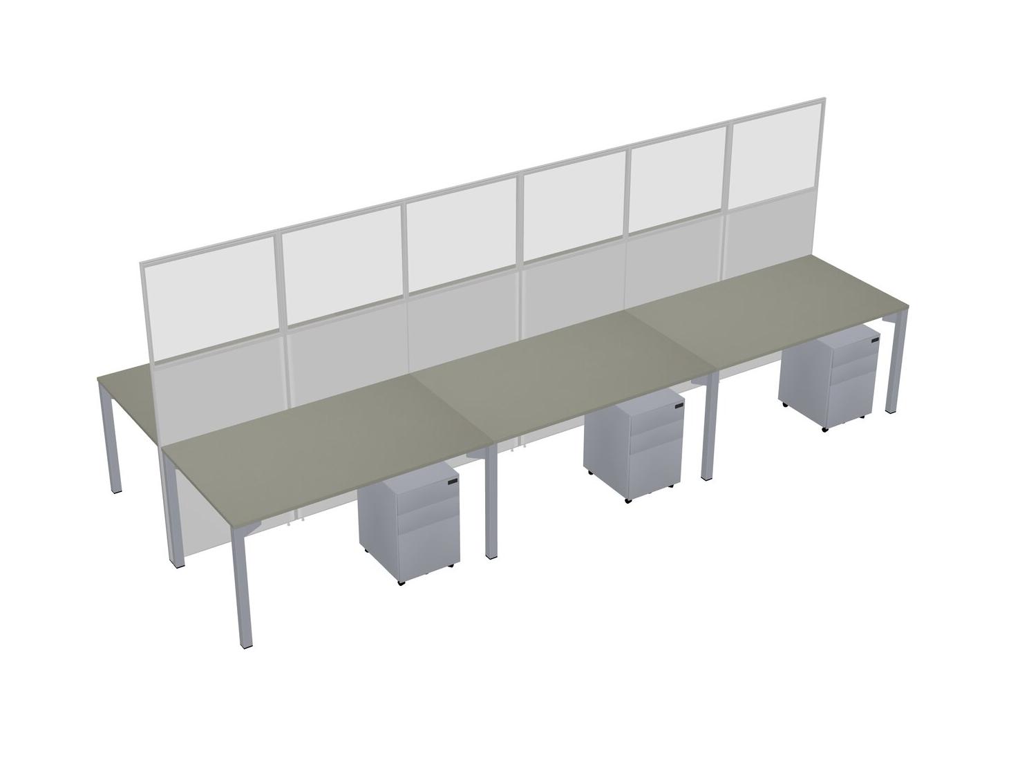 Grey Shadows Shared Rectangular Office Cubicle Panel System With Mobile Drawers For 6 Persons