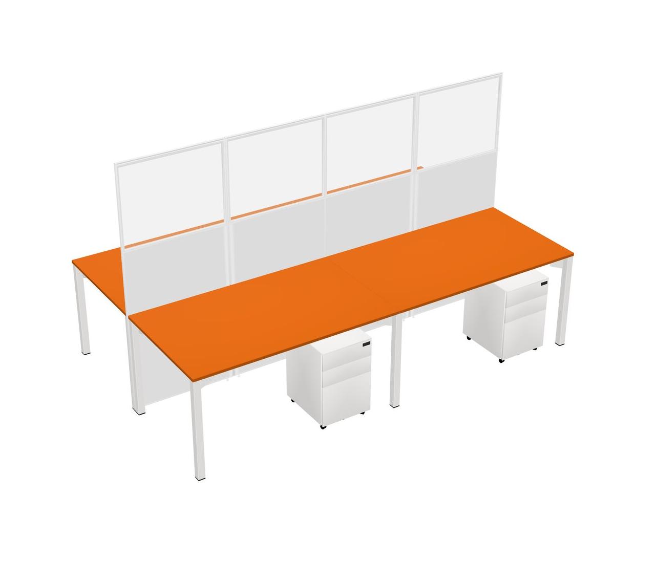 Orange Shared Rectangular Office Cubicle Panel System With Mobile Drawers For 4 Persons