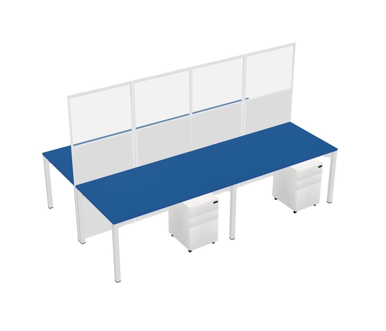 Prism Blue Shared Rectangular Office Cubicle Panel System With Mobile Drawers For 4 Persons