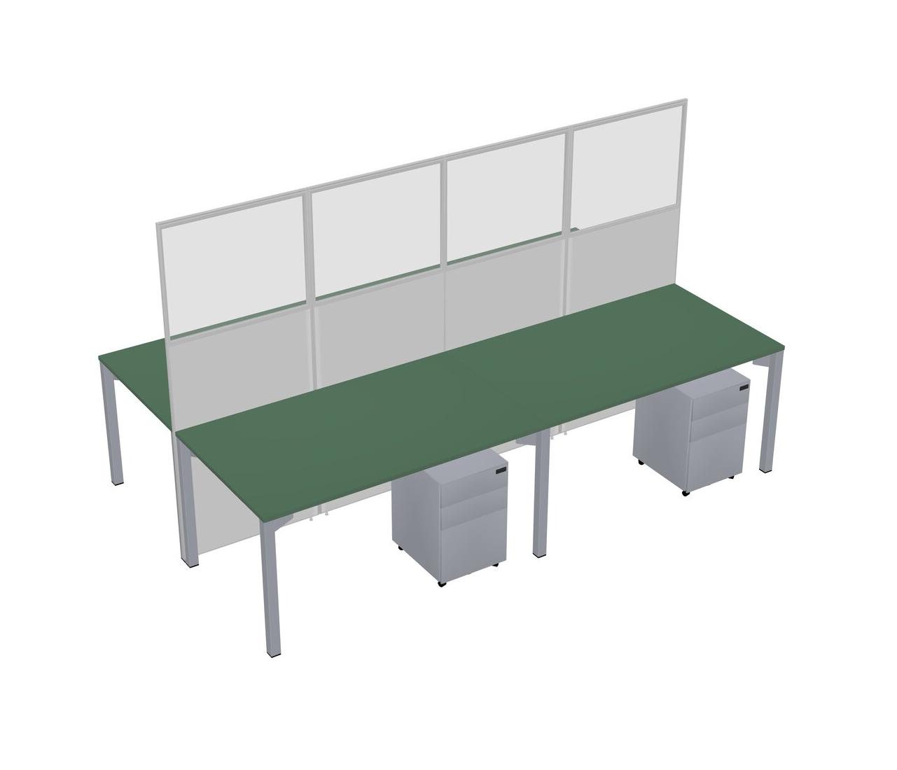 Green Shared Rectangular Office Cubicle Panel System With Mobile Drawers For 4 Persons