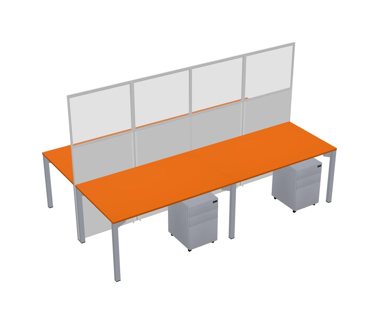 Orange Shared Rectangular Office Cubicle Panel System With Mobile Drawers For 4 Persons