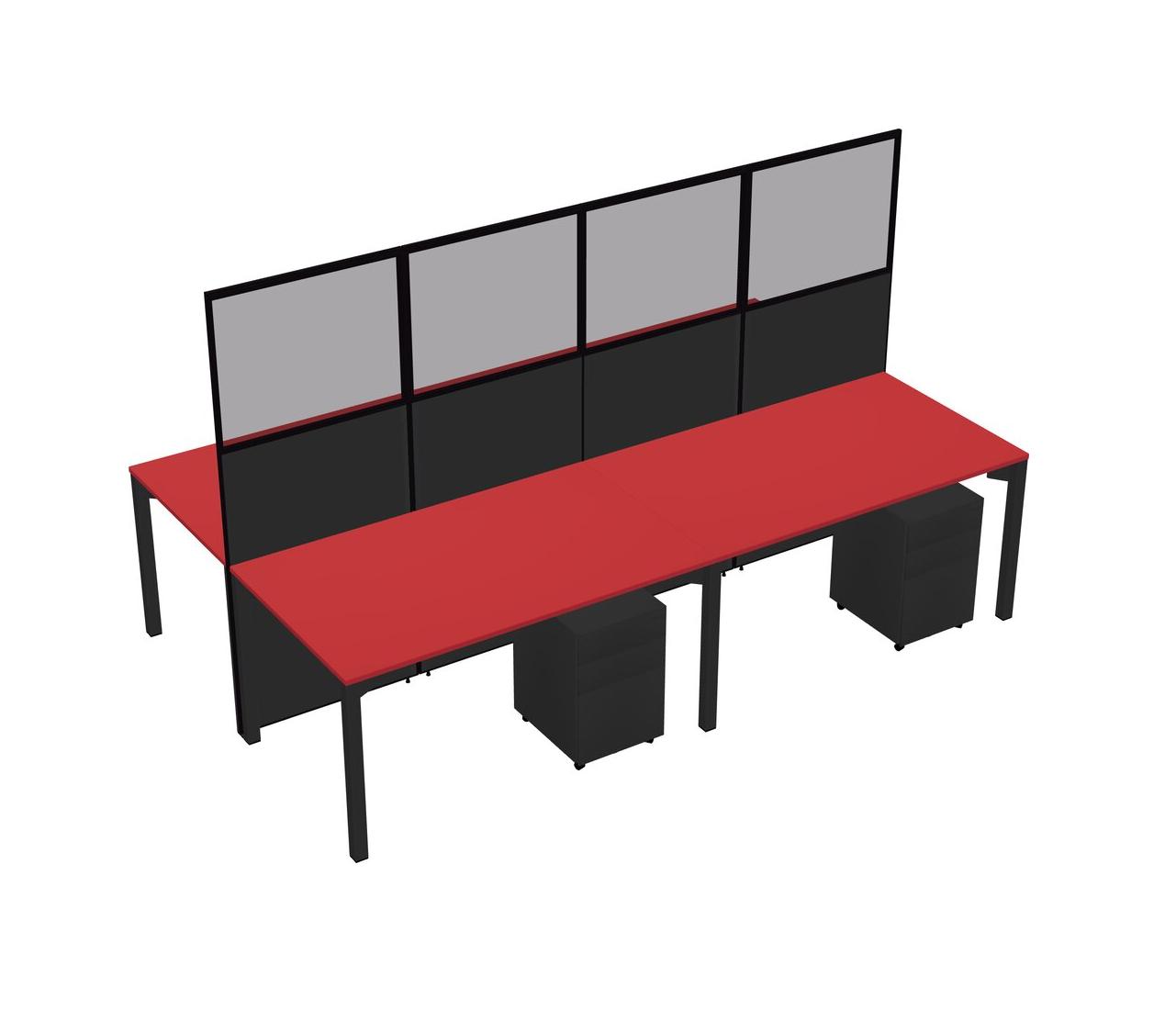 Prism Red Shared Rectangular Office Cubicle Panel System With Mobile Drawers For 4 Persons