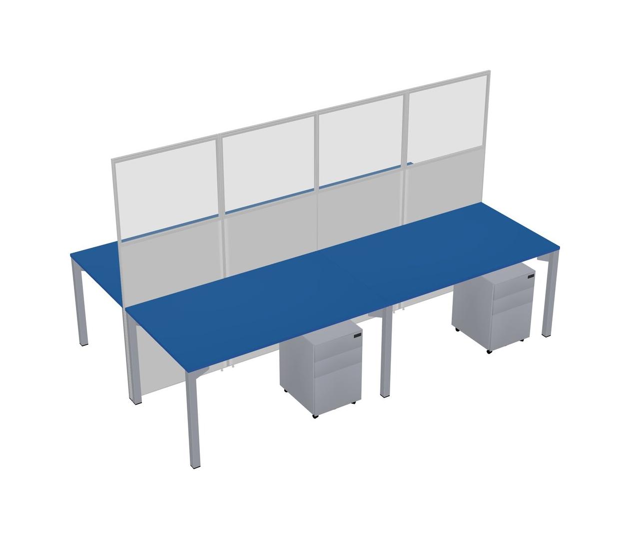Prism Blue Shared Rectangular Office Cubicle Panel System With Mobile Drawers For 4 Persons